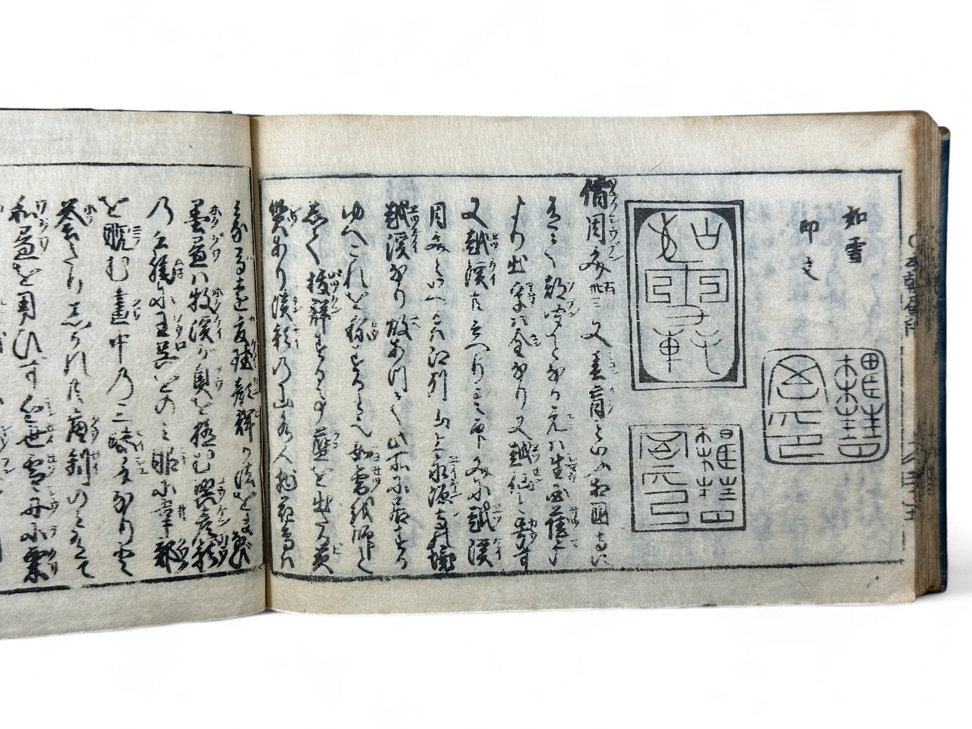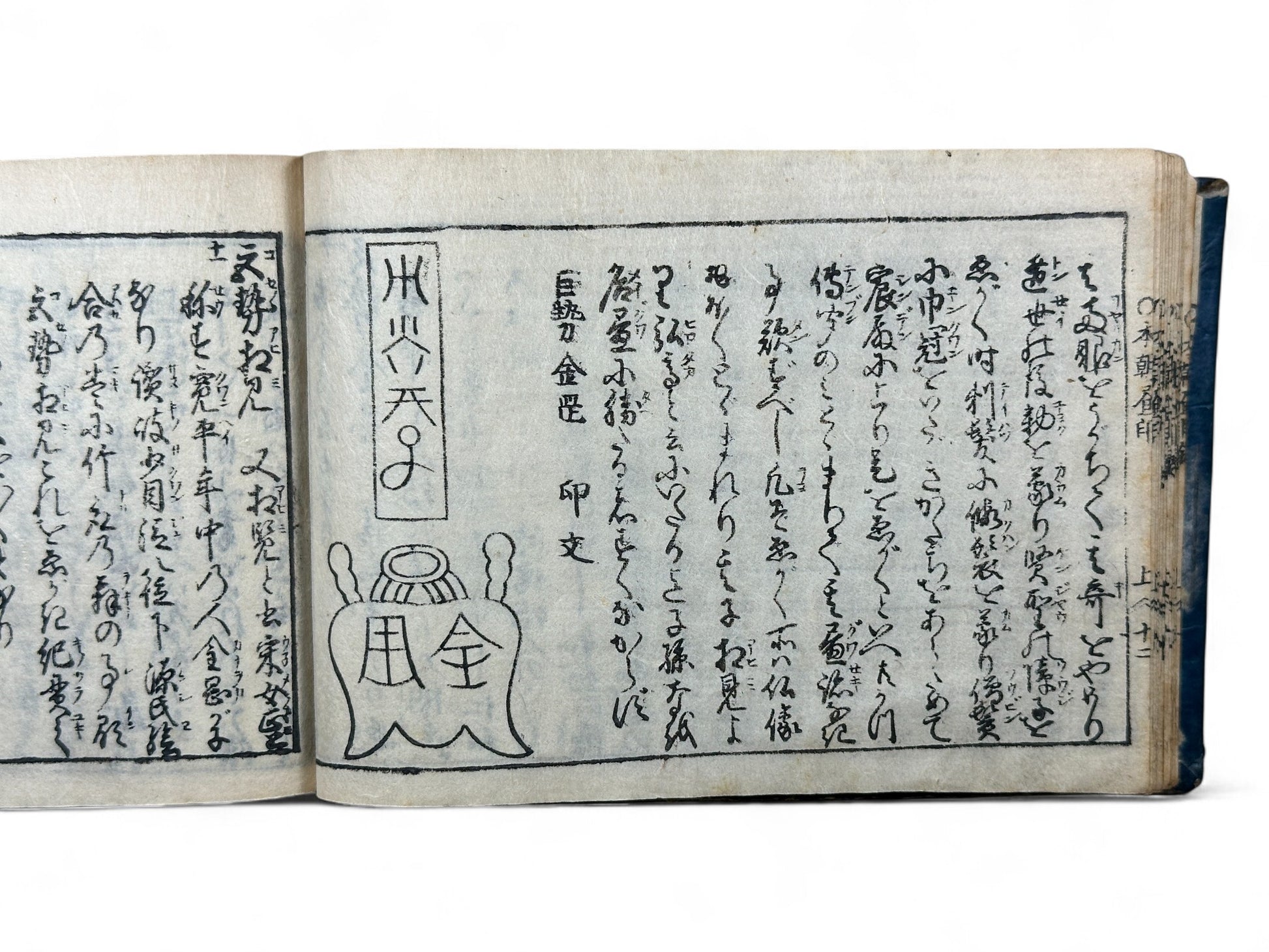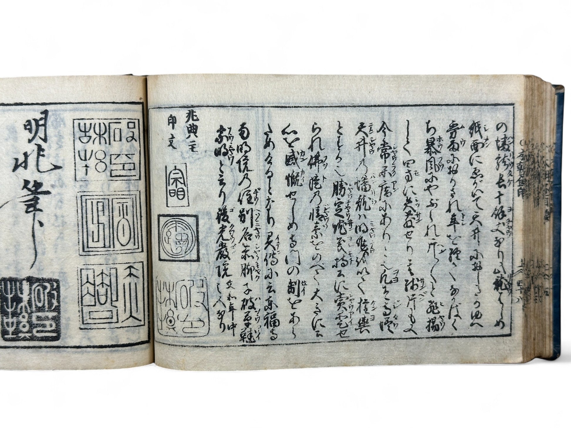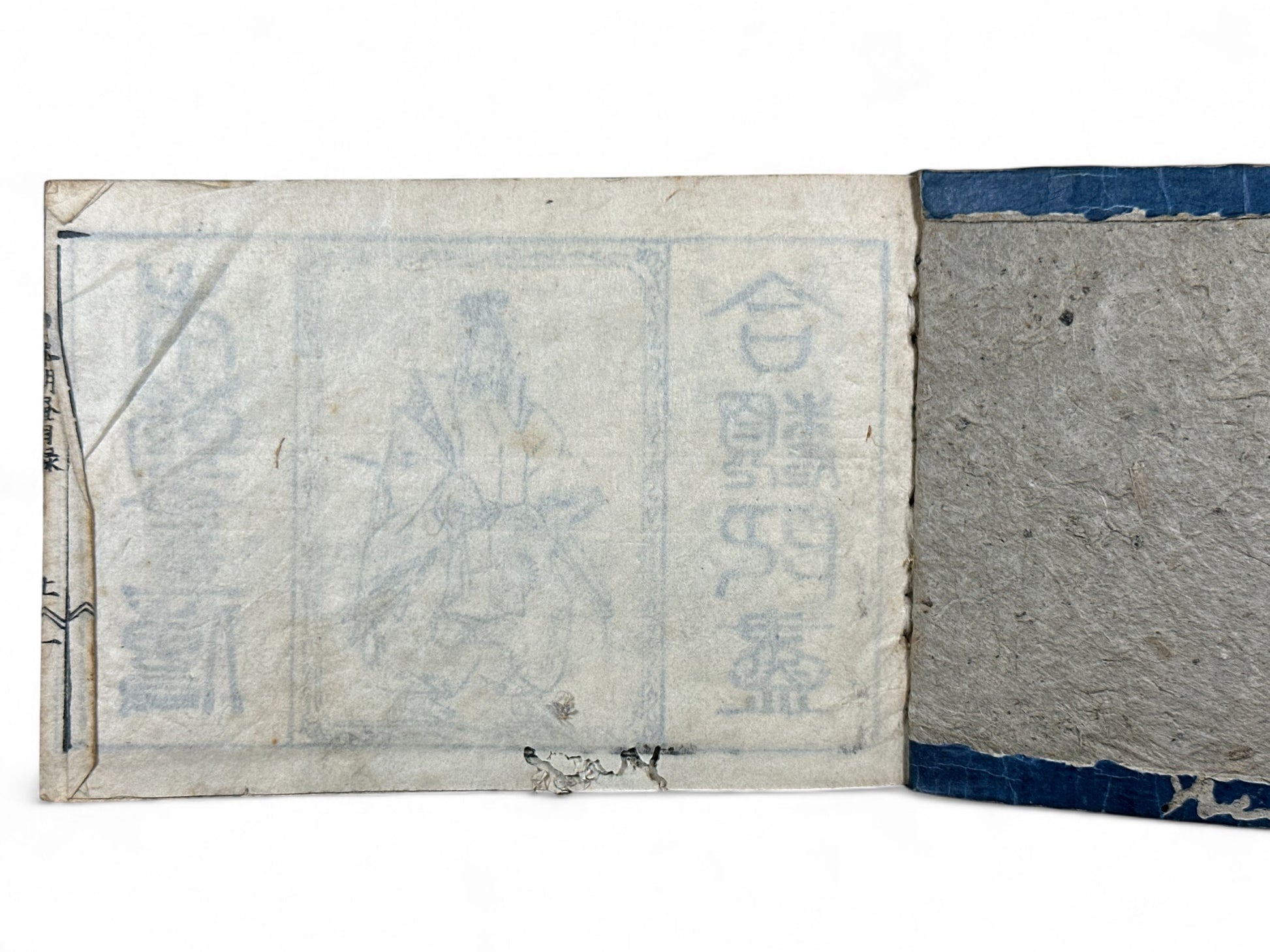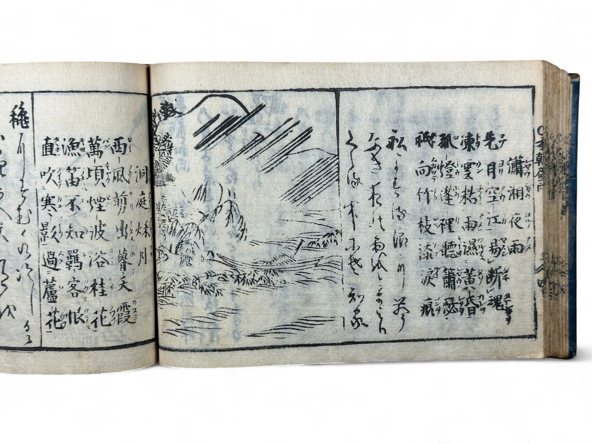 Printed on handmade washi paper and bound in fukurotoji format with its original indigo-blue cover, the book exemplifies the aesthetic harmony of Edo craftsmanship — balancing textual study and visual art.