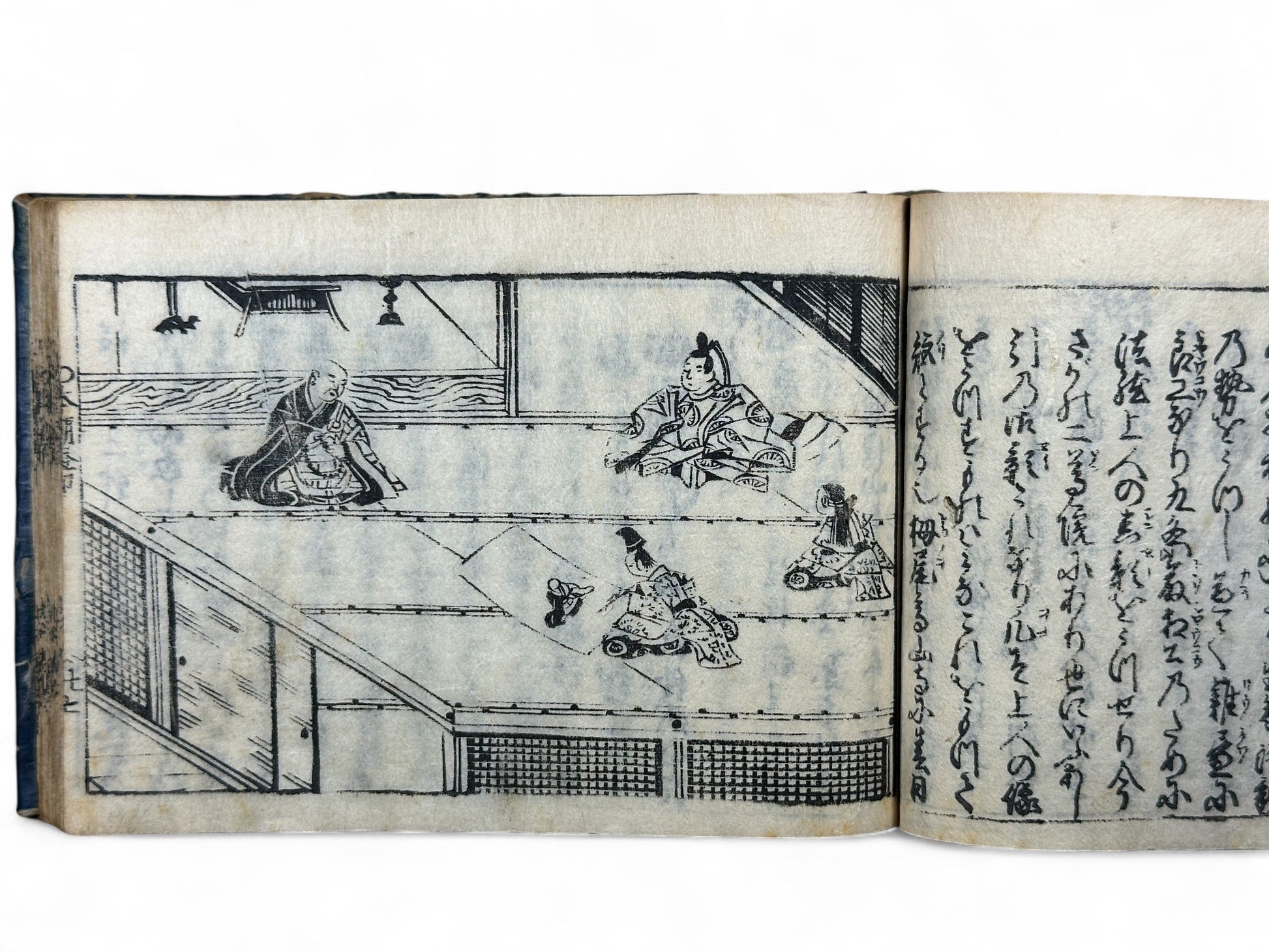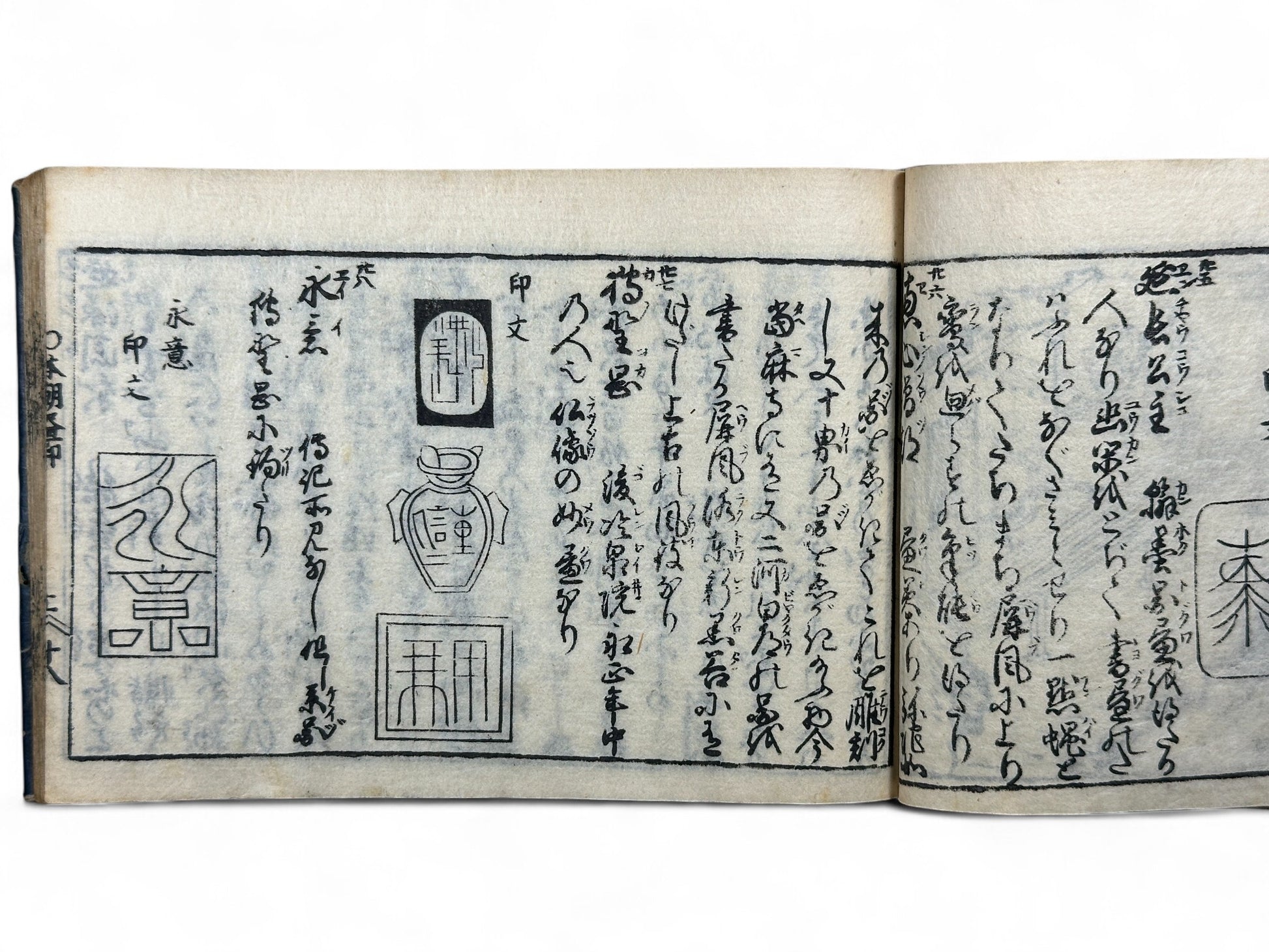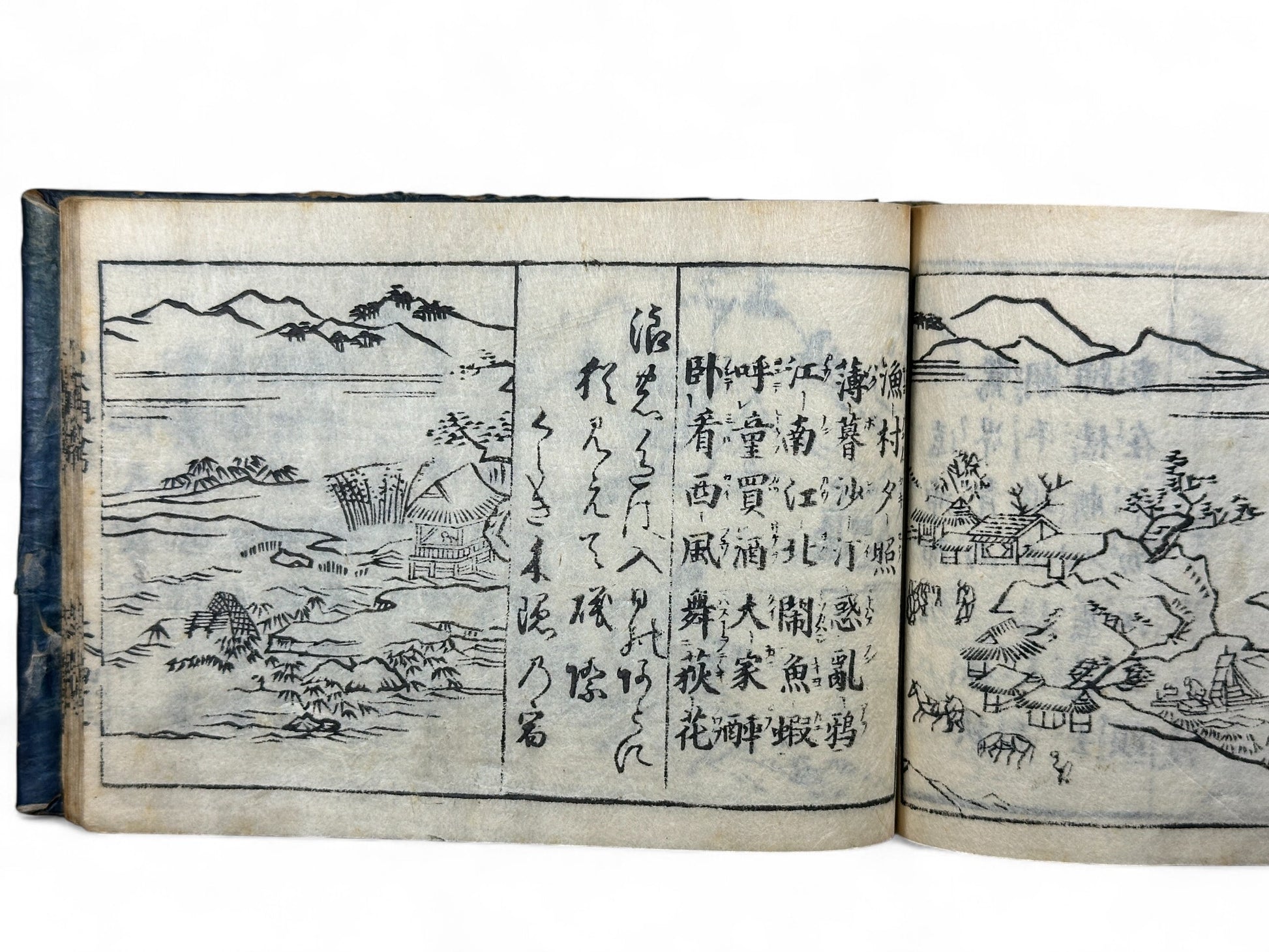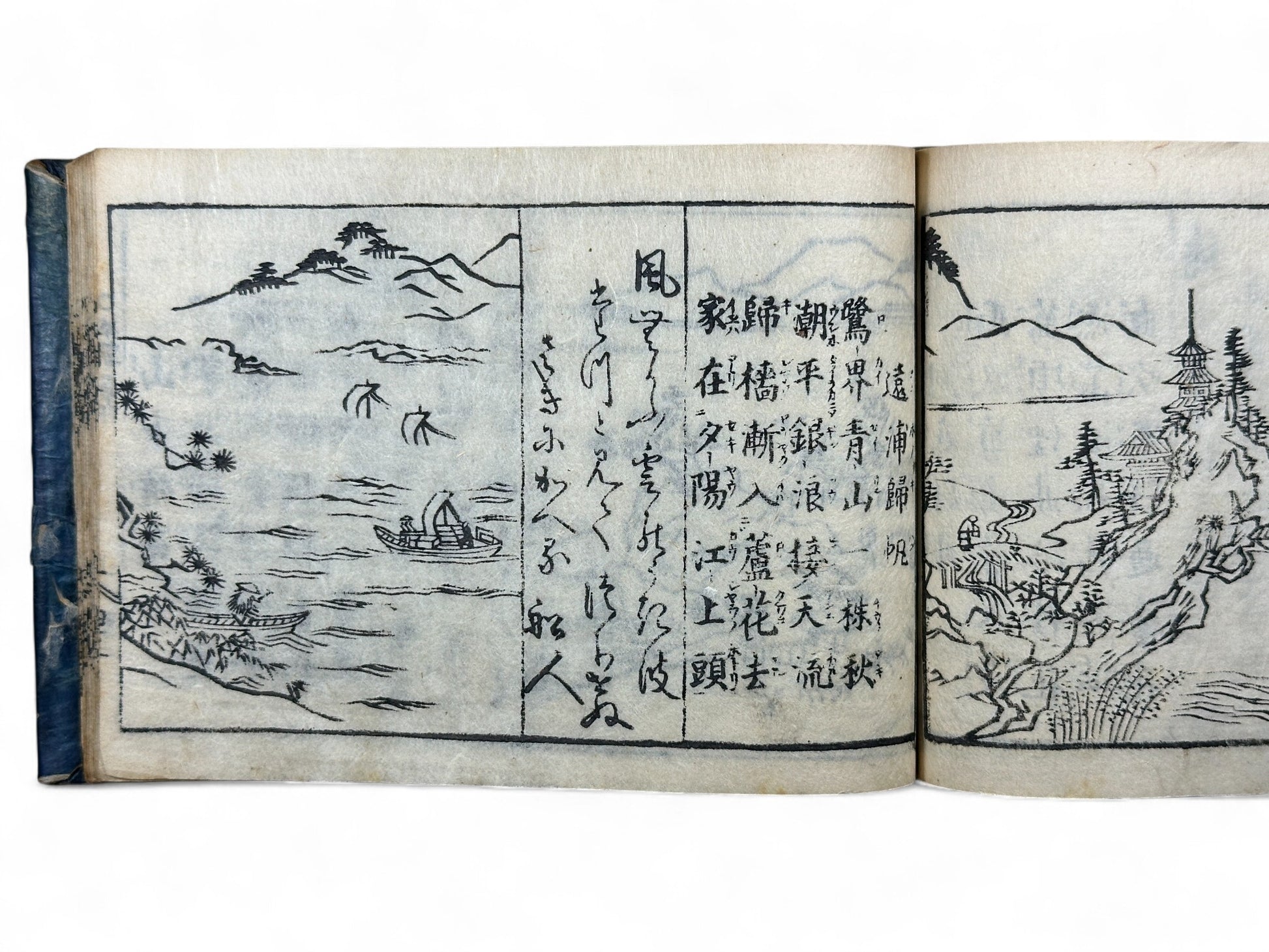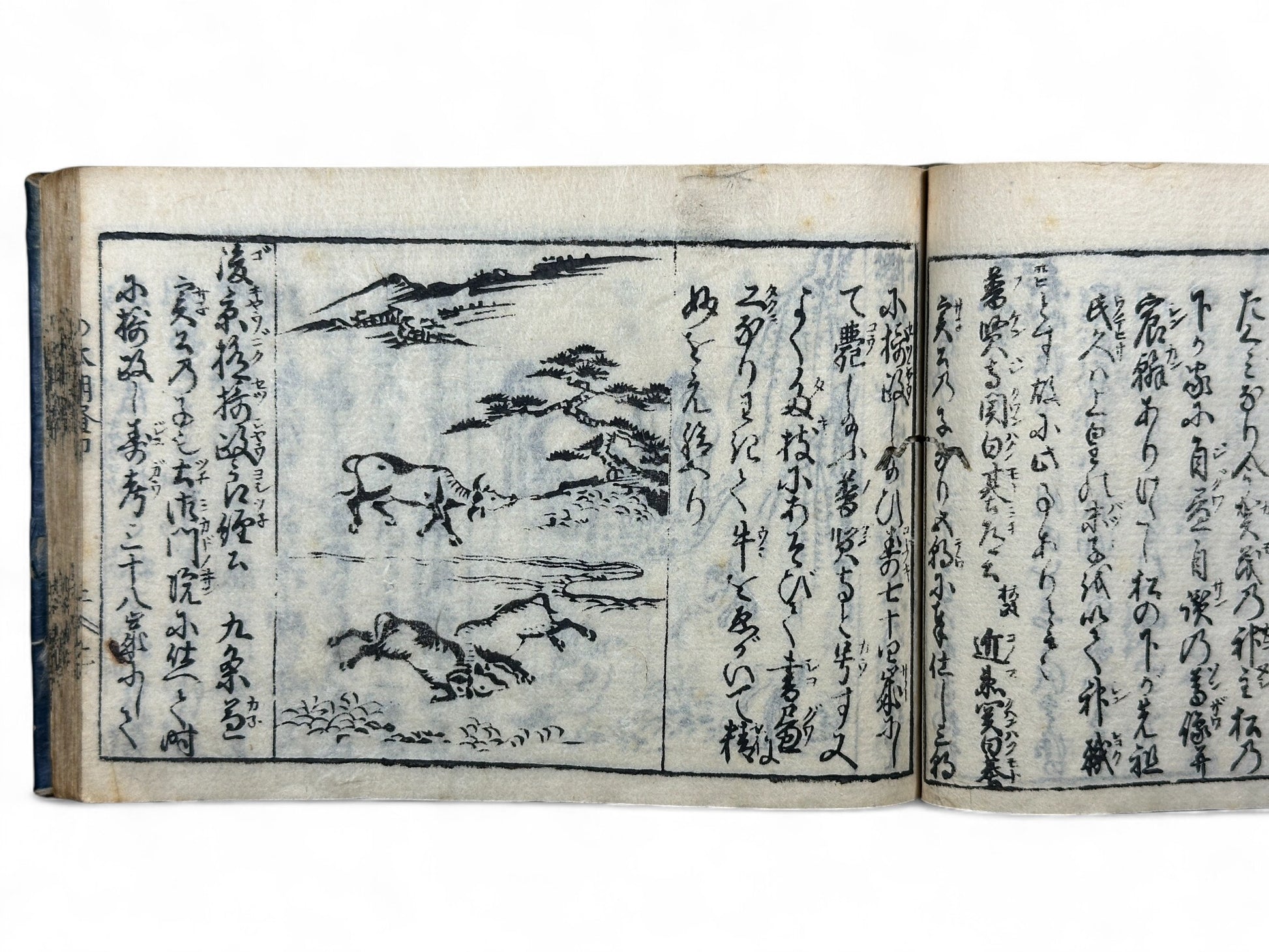 Printed on handmade washi paper and bound in fukurotoji format with its original indigo-blue cover, the book exemplifies the aesthetic harmony of Edo craftsmanship — balancing textual study and visual art.