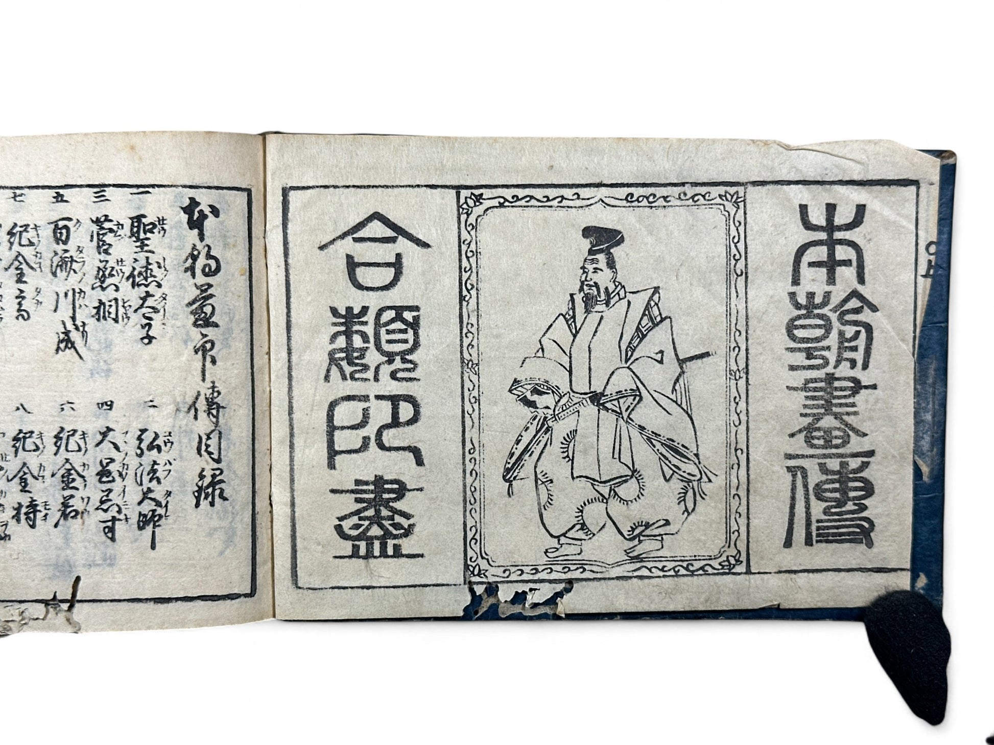 古今和漢萬寶全書 (Kokin Wakan Manpō Zensho) — The Complete Collection of Treasures, Ancient and Modern, Japanese and Chinese — is an important Edo-period woodblock-printed encyclopedia presenting a visual and literary compendium of historical, religious, and legendary figures from Japan and China.