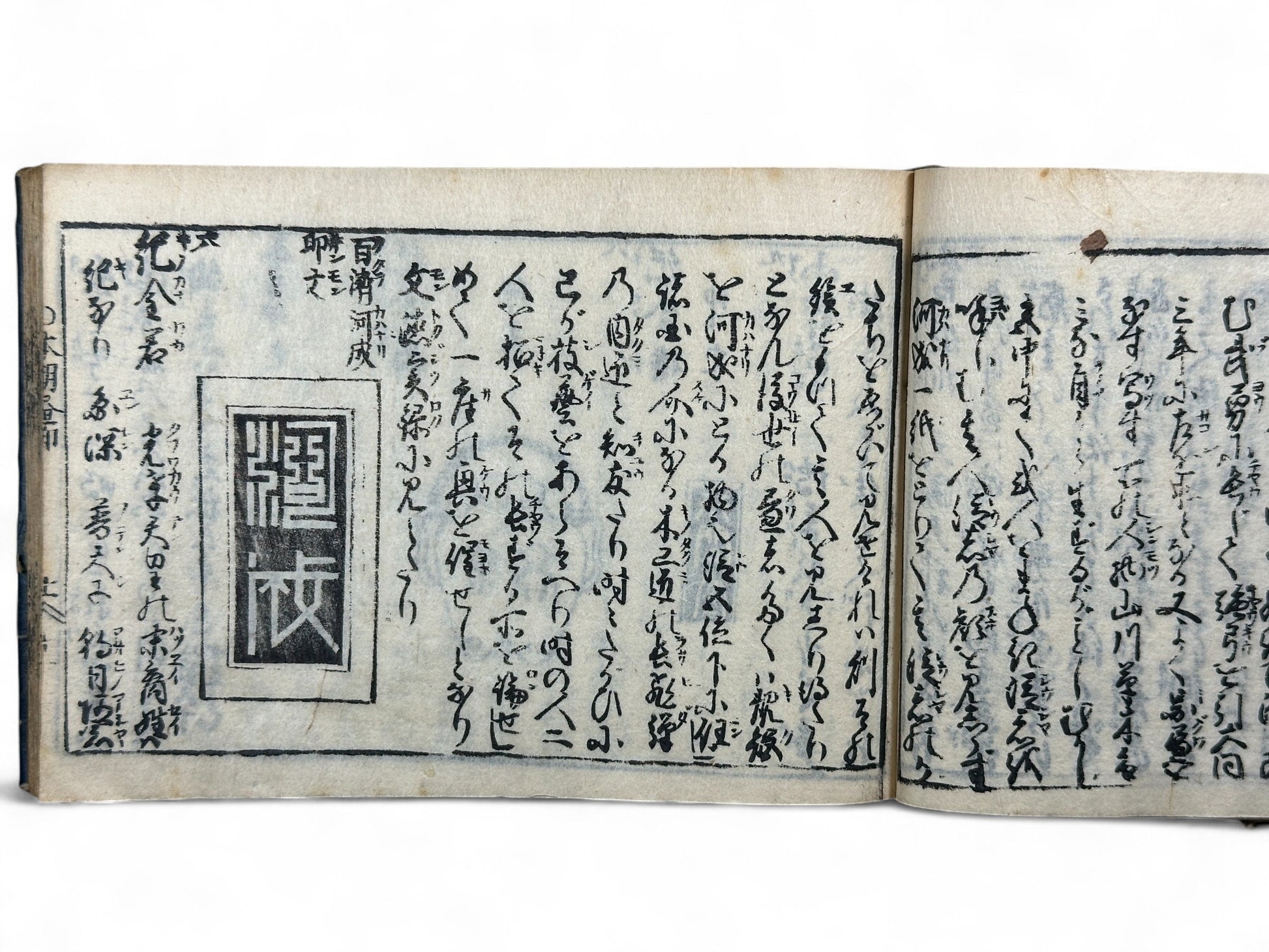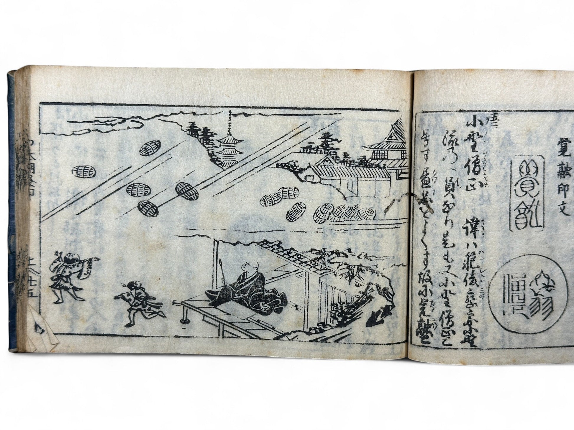 The presence of seals and inscriptions adds depth to its historical value, marking it as a genuine artifact from Japan’s flourishing print culture.