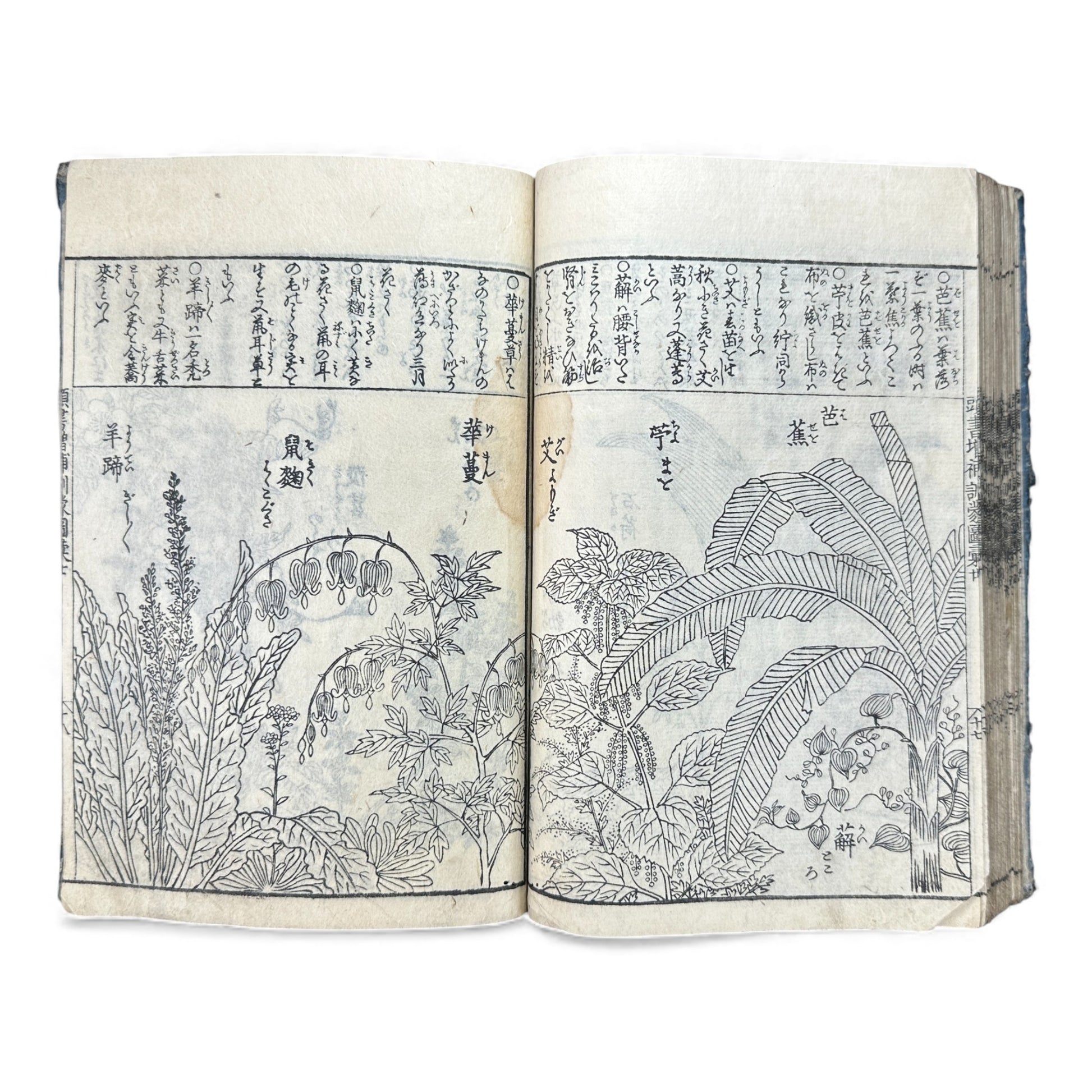 These encyclopedias were used in temple schools (寺子屋) to teach vocabulary, reading, nature study, botany, zoology, and daily life through detailed illustrations and classical Japanese text.