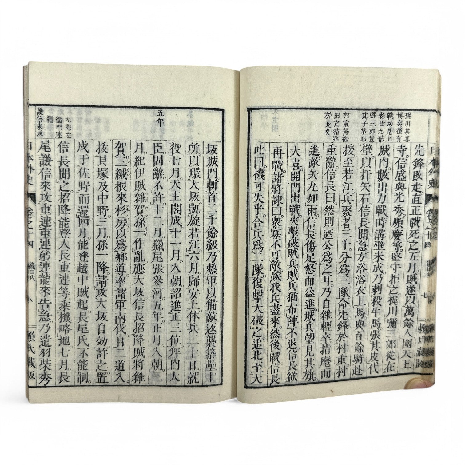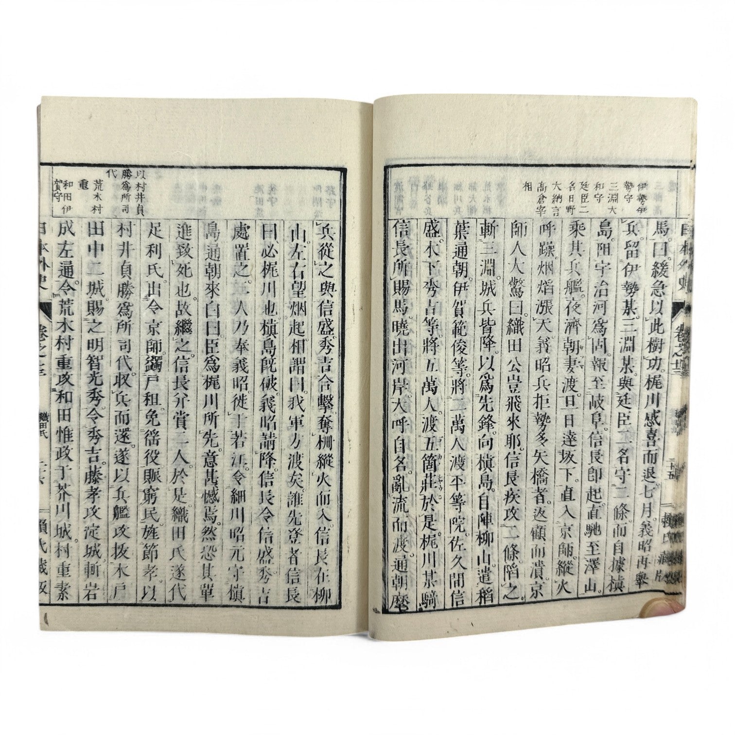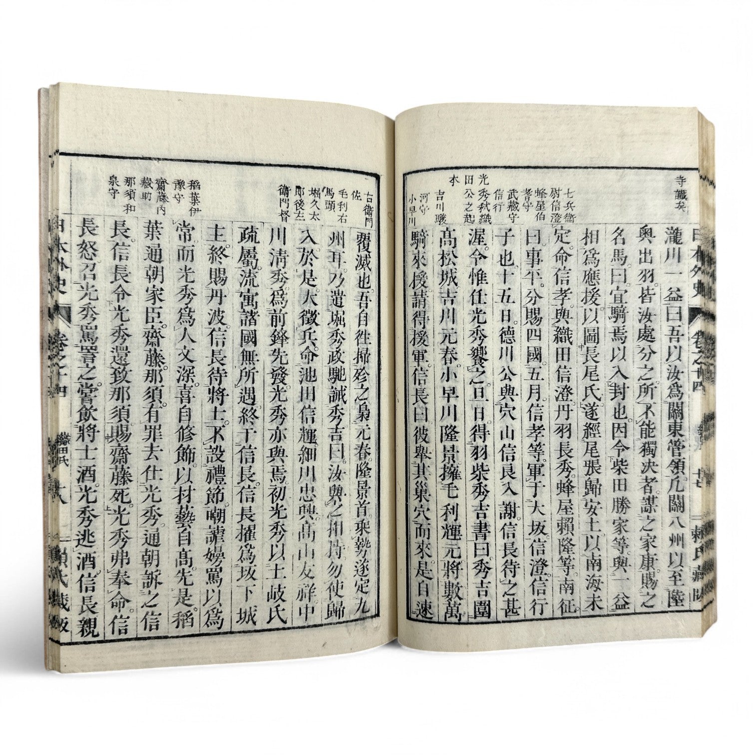 An original Meiji-era woodblock-printed edition of 『日本外史』(Nihon Gaishi), “Unofficial History of Japan,” authored by Rai San’yō (頼山陽, 1780–1832) — one of Japan’s most celebrated Confucian historians and poets.