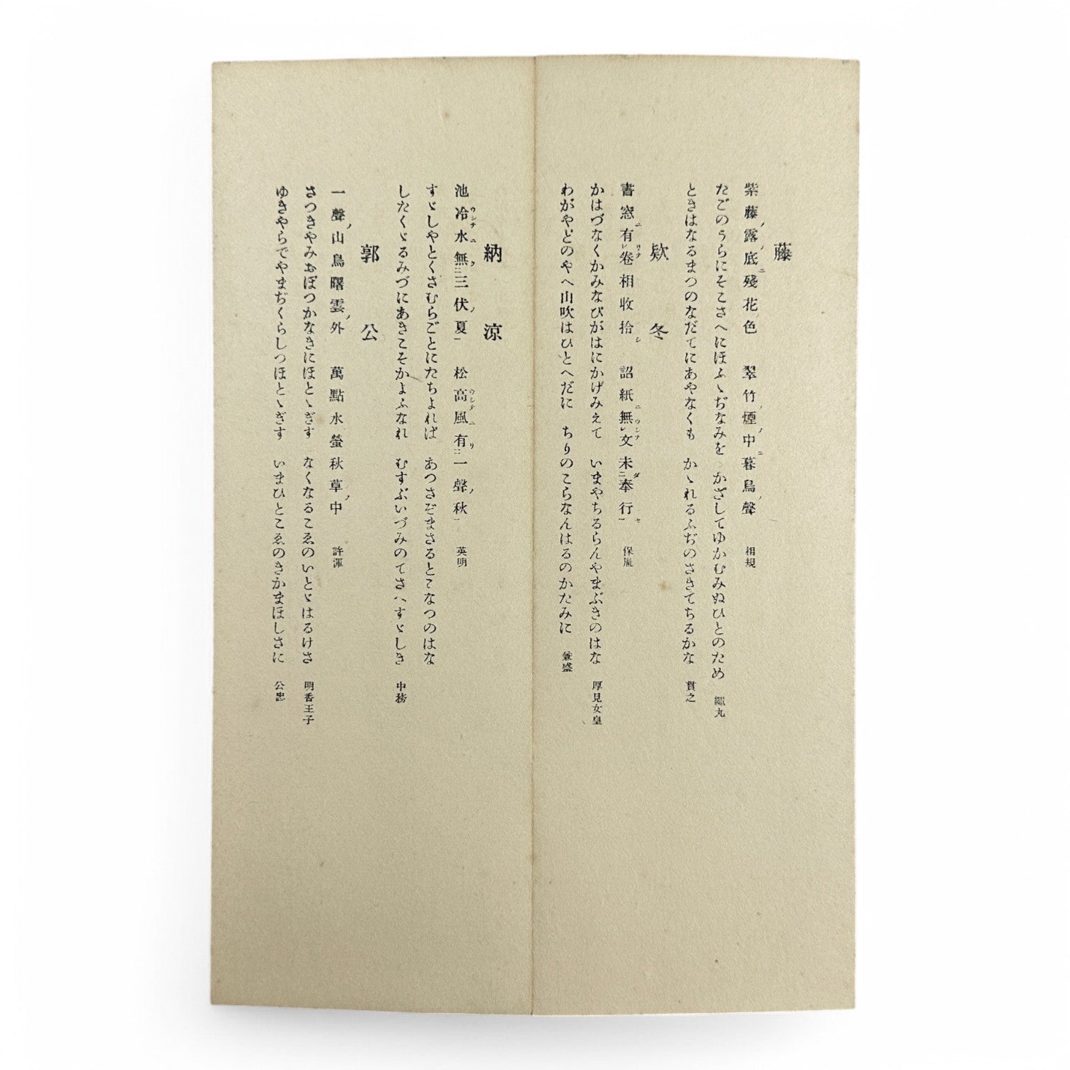 This rare Showa-period publication bridges Japan’s modern and classical worlds through the timeless discipline of rōei. Each poem reflects the seasonal and emotional sensitivity that defines Japanese aesthetics — perfect for collectors of calligraphy books, waka poetry, or prewar Japanese literature.