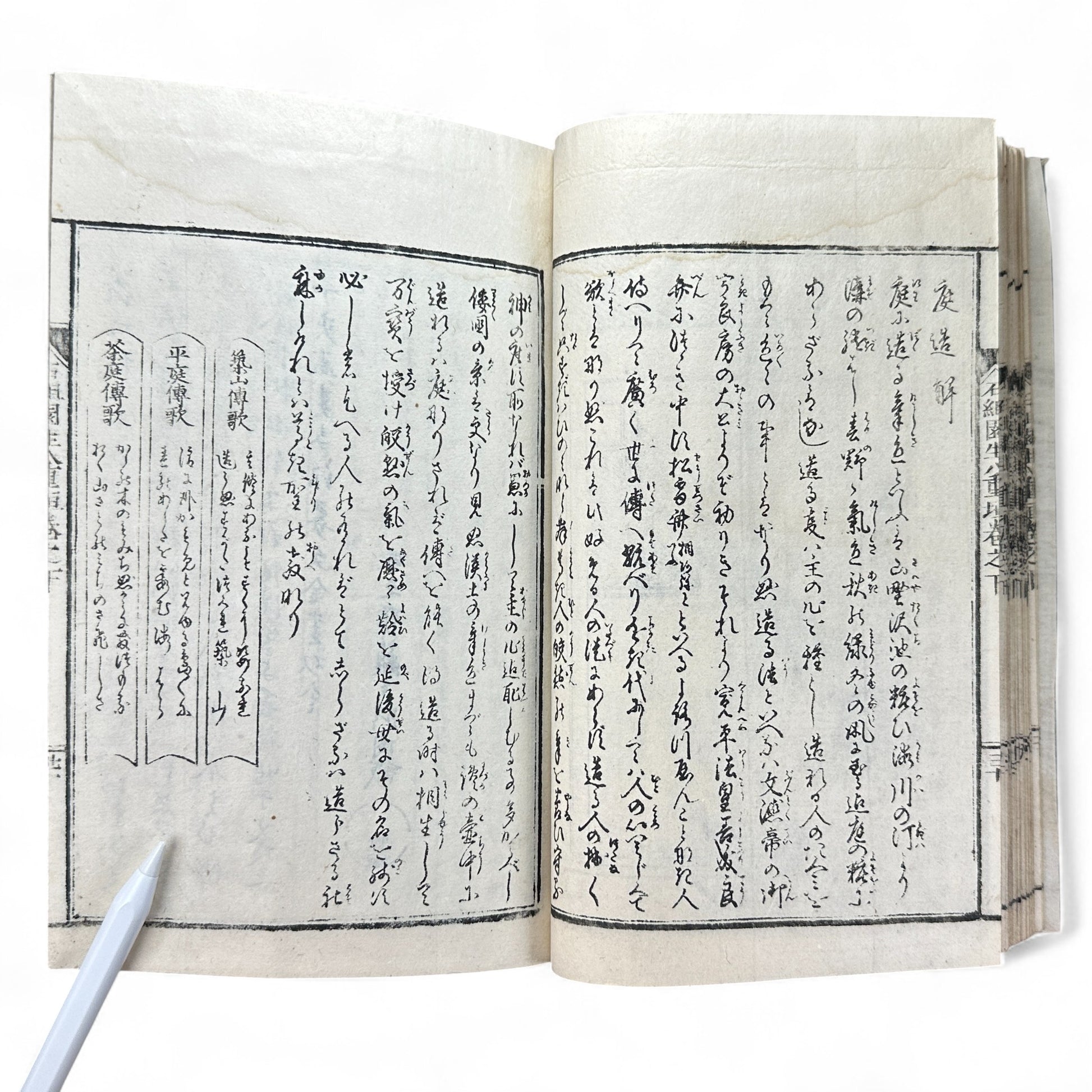 Shinsen Teisakuden (新撰庭作伝), meaning “New Treatise on Garden Design”, is a rare Edo-period woodblock-printed book dedicated to the art of Japanese garden architecture (庭作, teisaku).