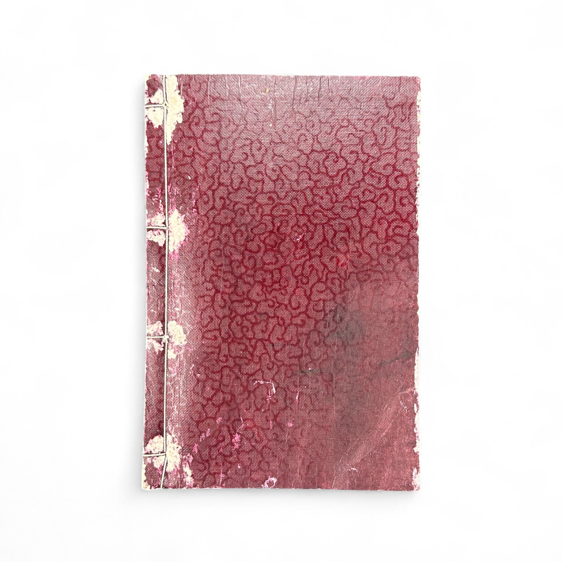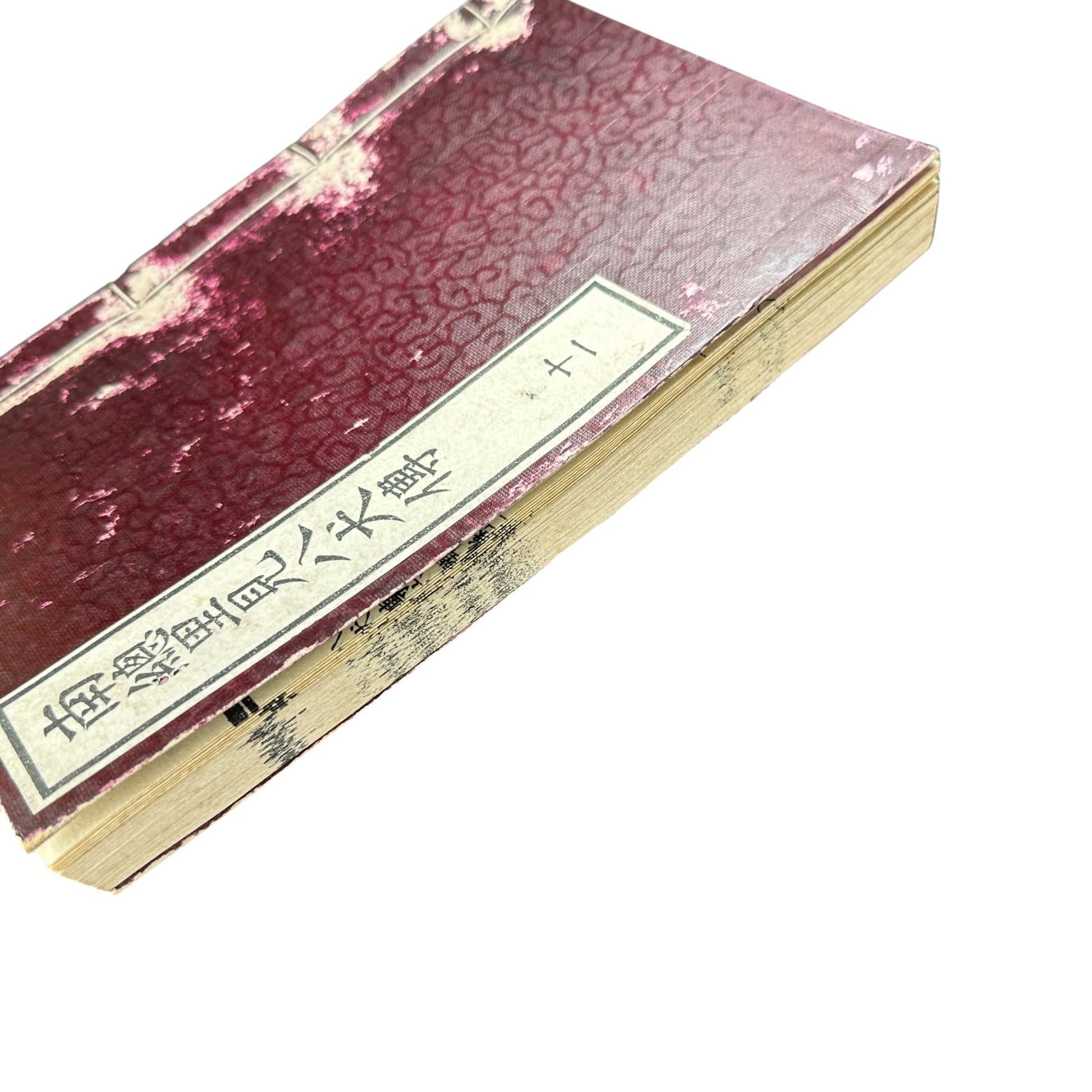 Printed on washi handmade paper and bound in fukuro-toji (traditional side-stitch) format, the book retains its embossed crimson cover and title slip, hallmarks of Edo-era publishing.