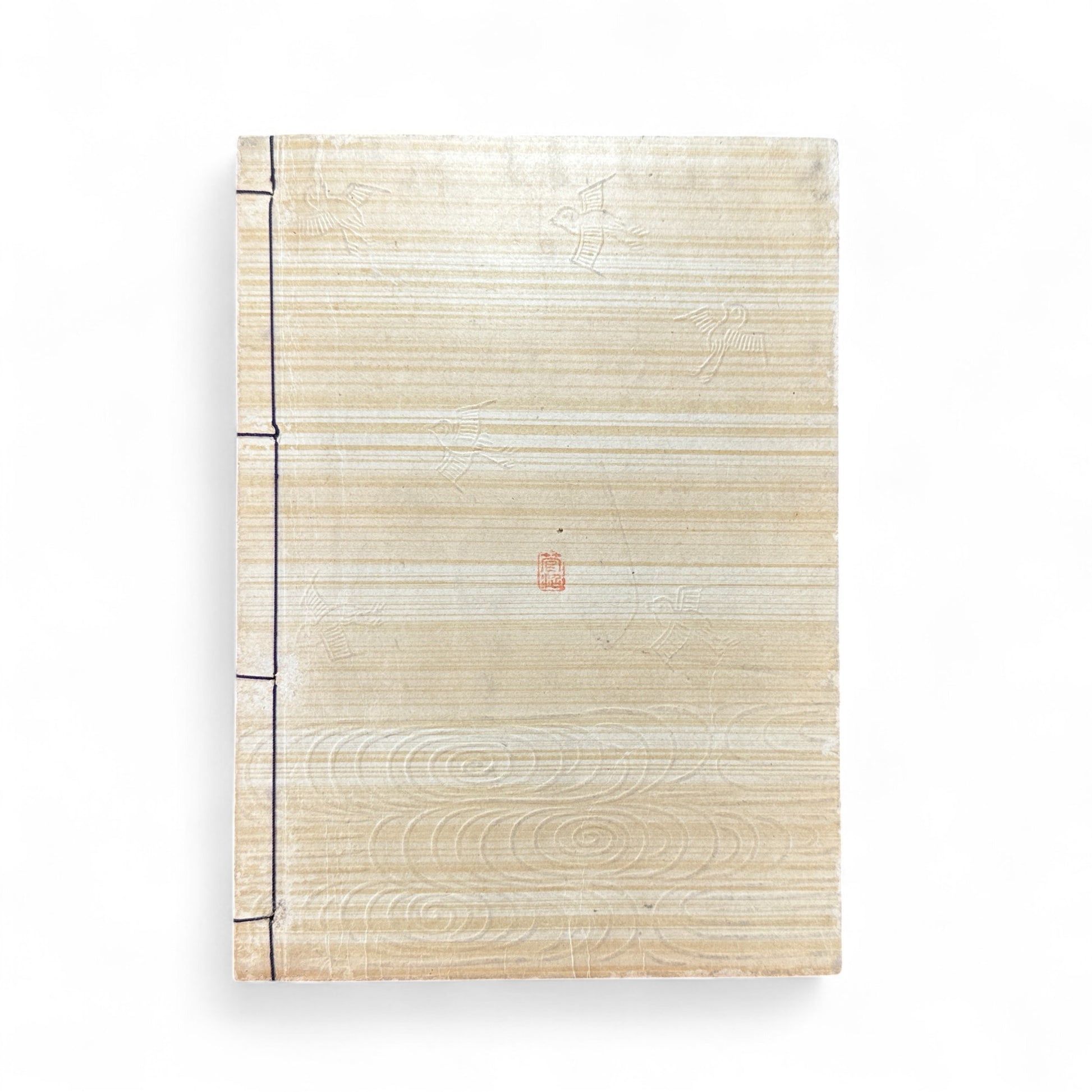 A rare example of late-Meiji literature and calligraphic artistry, preserved with delicate washi paper and a fine patterned cover evoking silk textile grain.