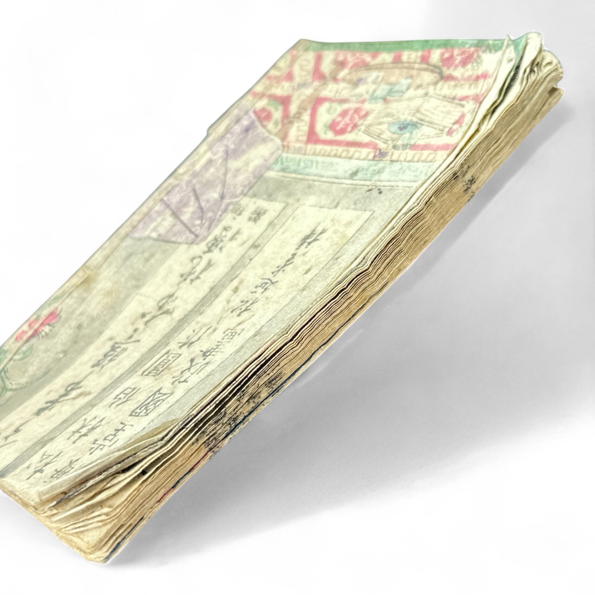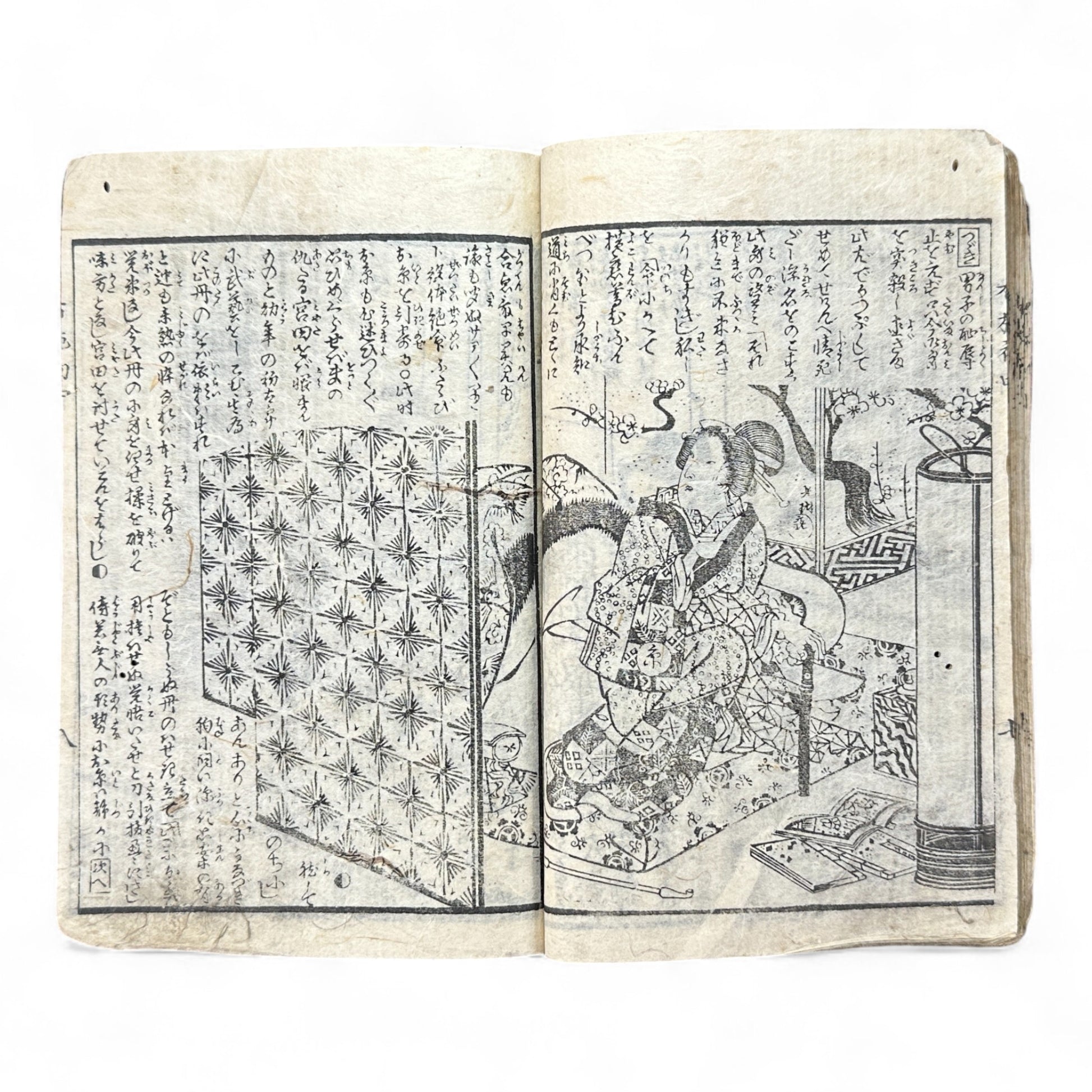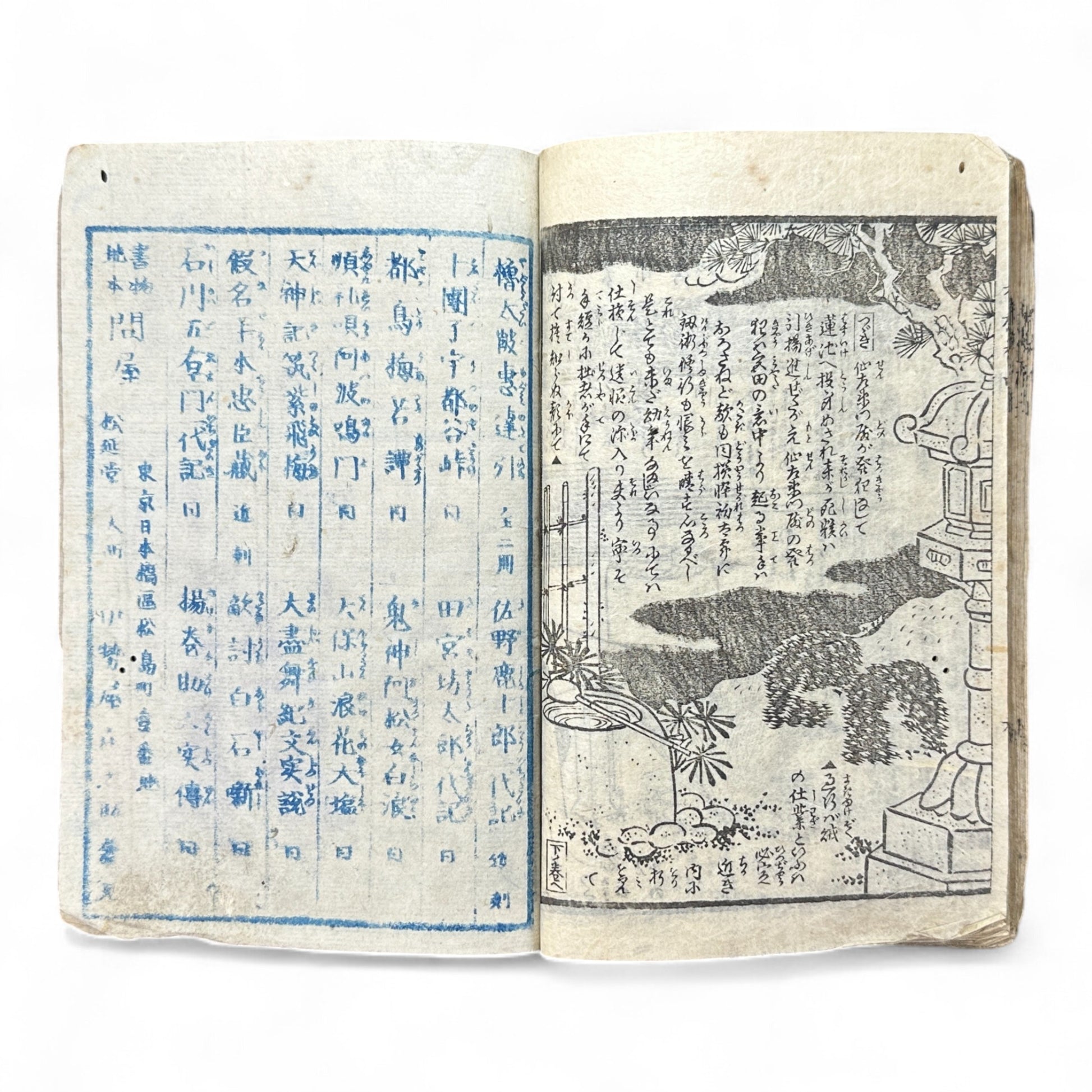 Printed by Shōendō (松延堂) on handmade washi paper, the book features delicate color woodblock illustrations, finely printed text, and traditional fukurotoji (stitched binding).
