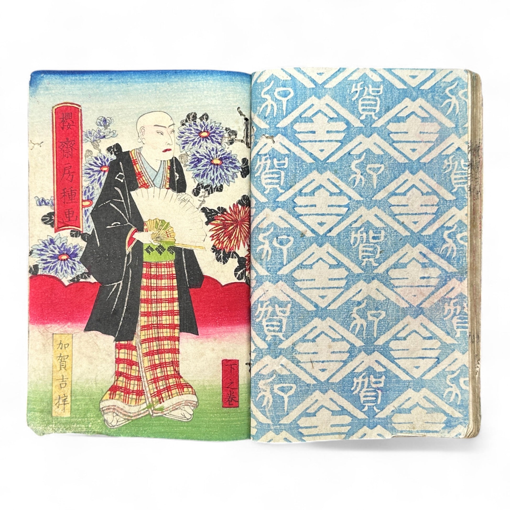 A rare Meiji-period woodblock-printed illustrated novel, titled 離れ菊 掬鏡 (Hanaregiku Kyokkyō) — “The Chrysanthemum Apart – Reflected in a Mirror.”