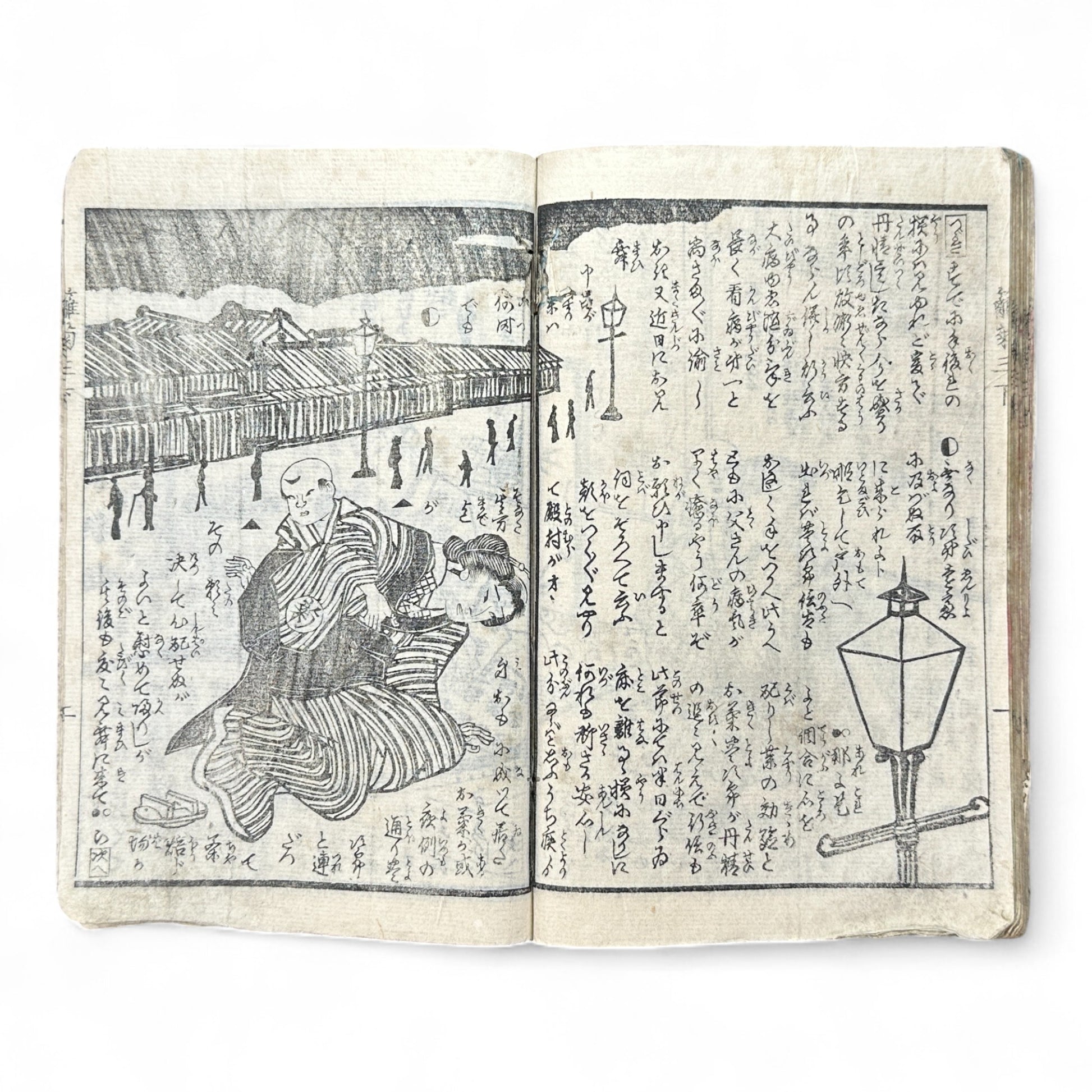 Its gas lamps, interiors, and modern clothing in the illustrations symbolize Japan’s modernization while retaining classic literary sentiment — a perfect artifact of the Edo-Meiji cultural bridge.