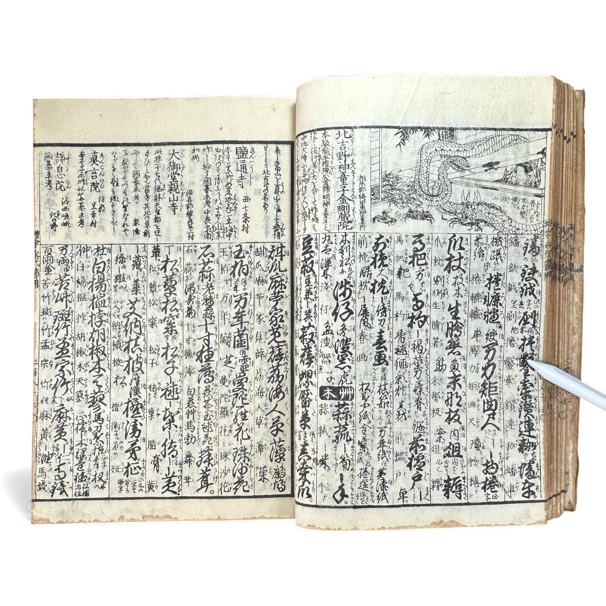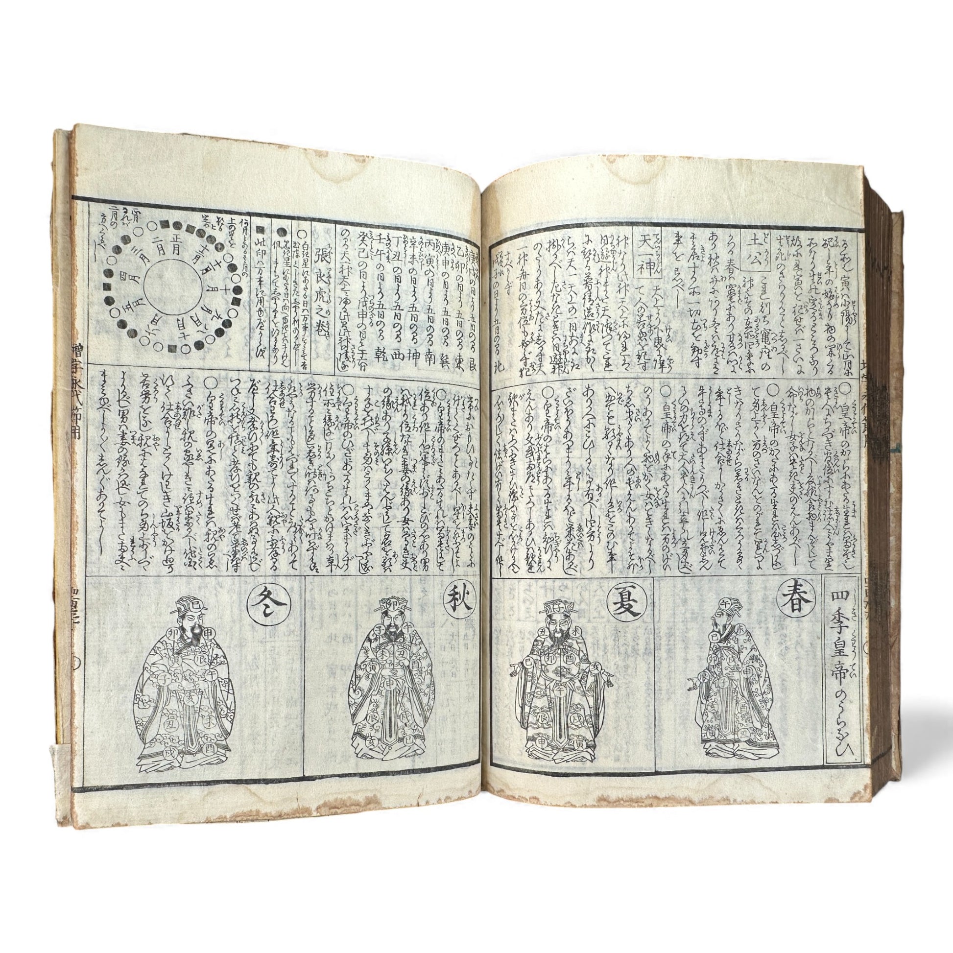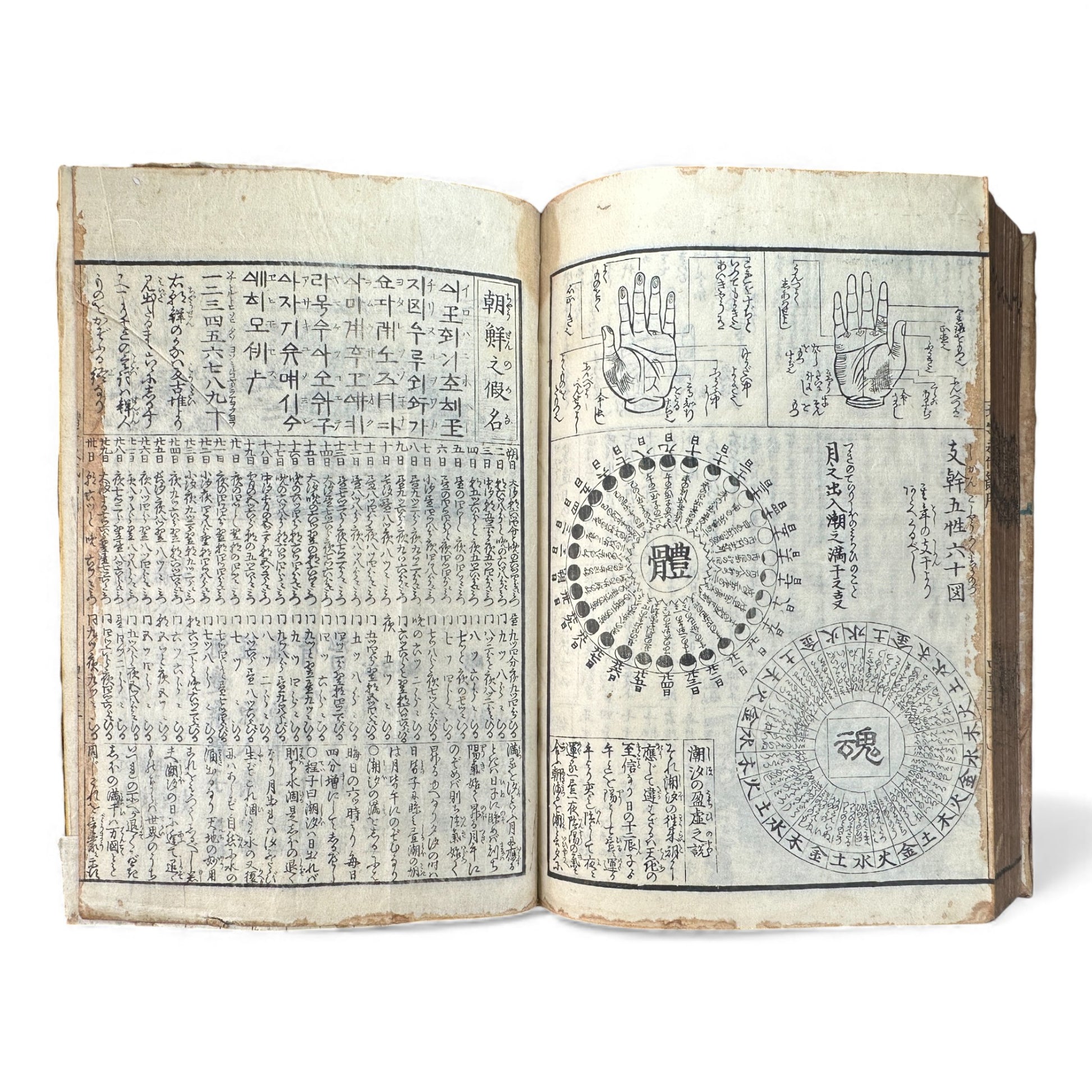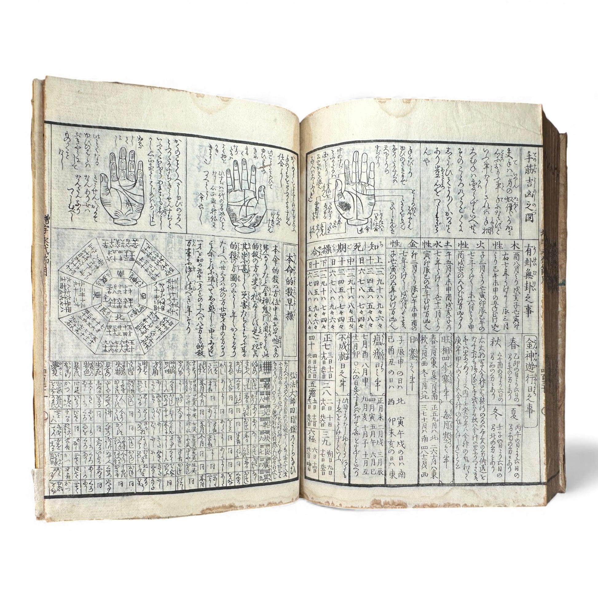 Edo Japanese Illustrated Encyclopedia – History, Divination, Palmistry, Calendars & Figures – Rare Woodblock Compendium - B126