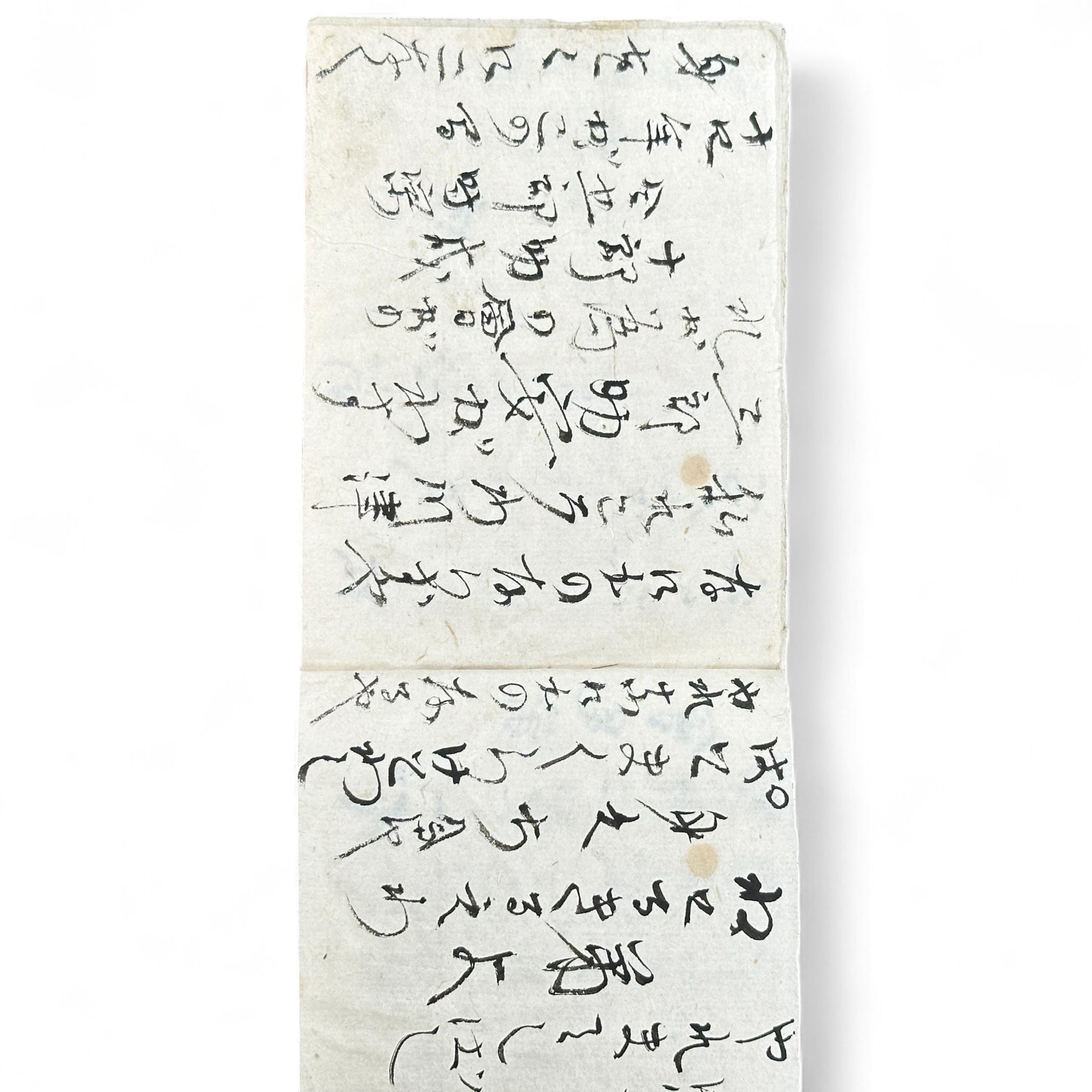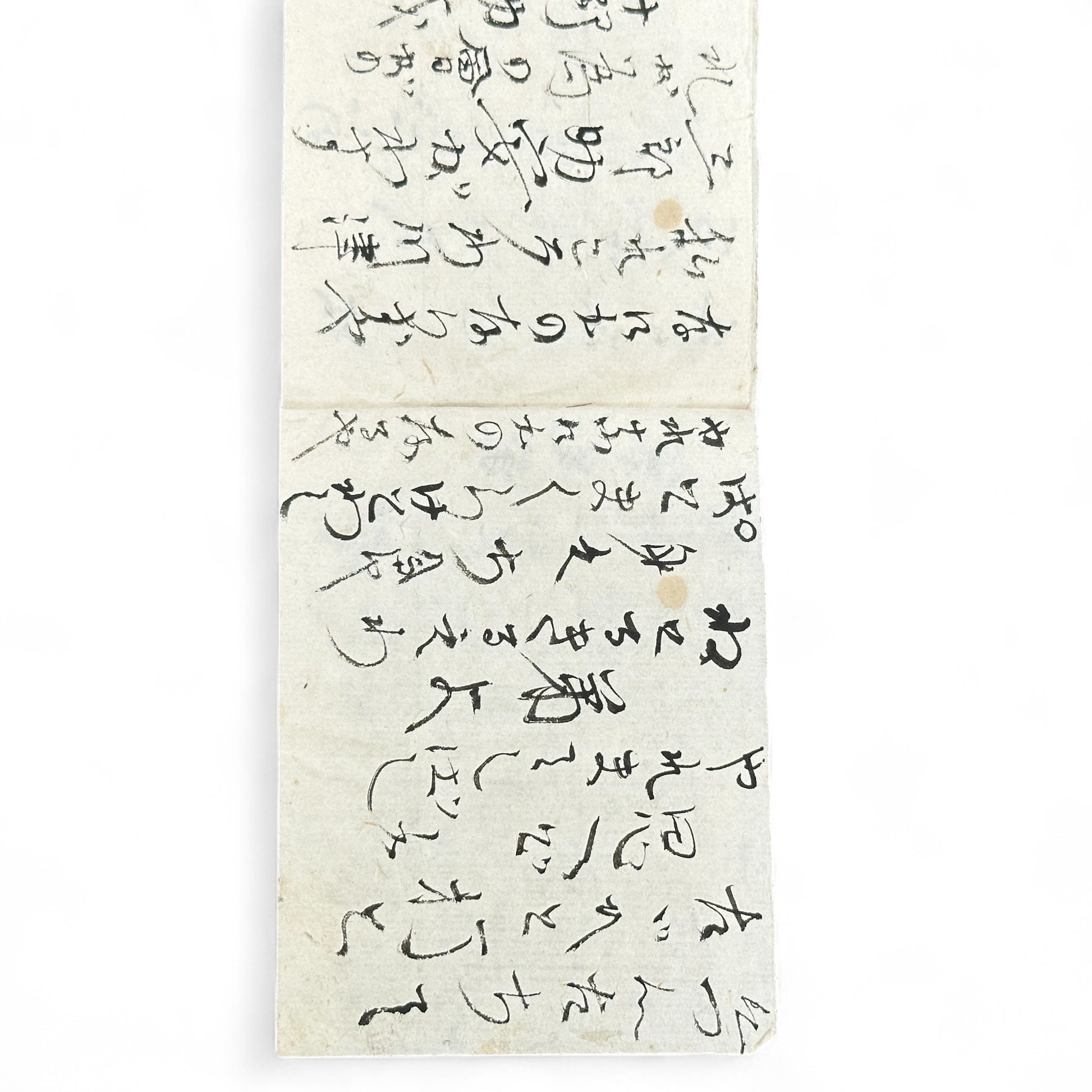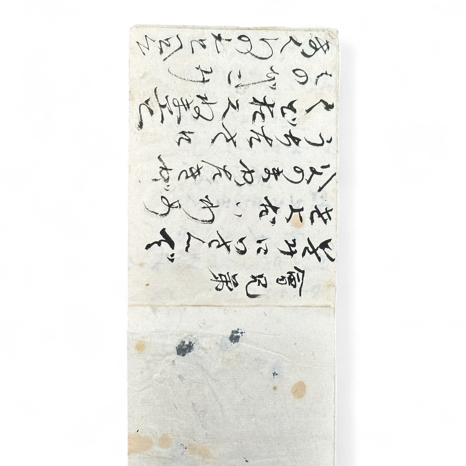 A fascinating handwritten Japanese manuscript notebook dating from the late Edo to early Meiji period (circa 1850–1880). Crafted on traditional handmade washi paper and bound with a string-tied top binding, this compact notebook reveals a glimpse into Japan’s educational and literary past.