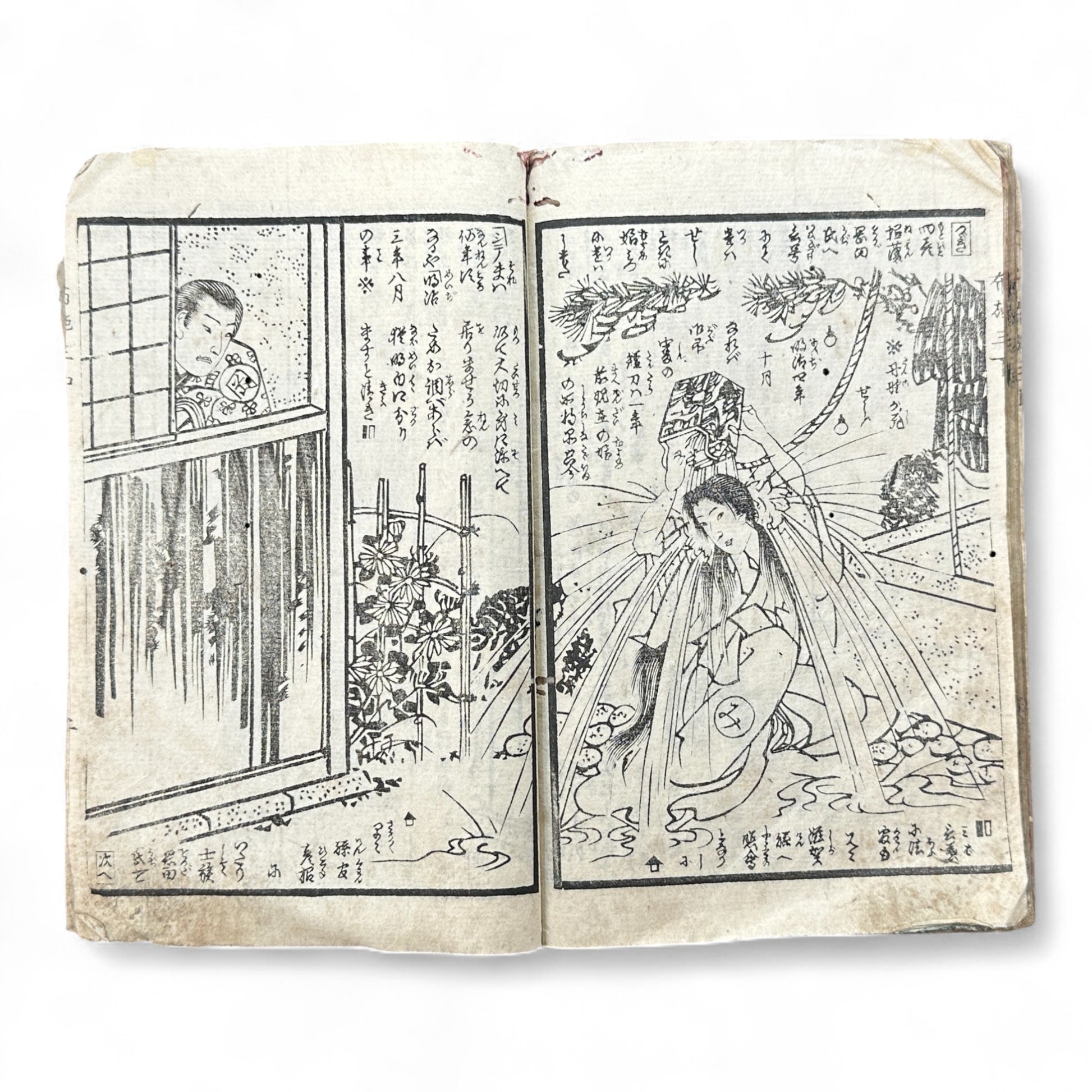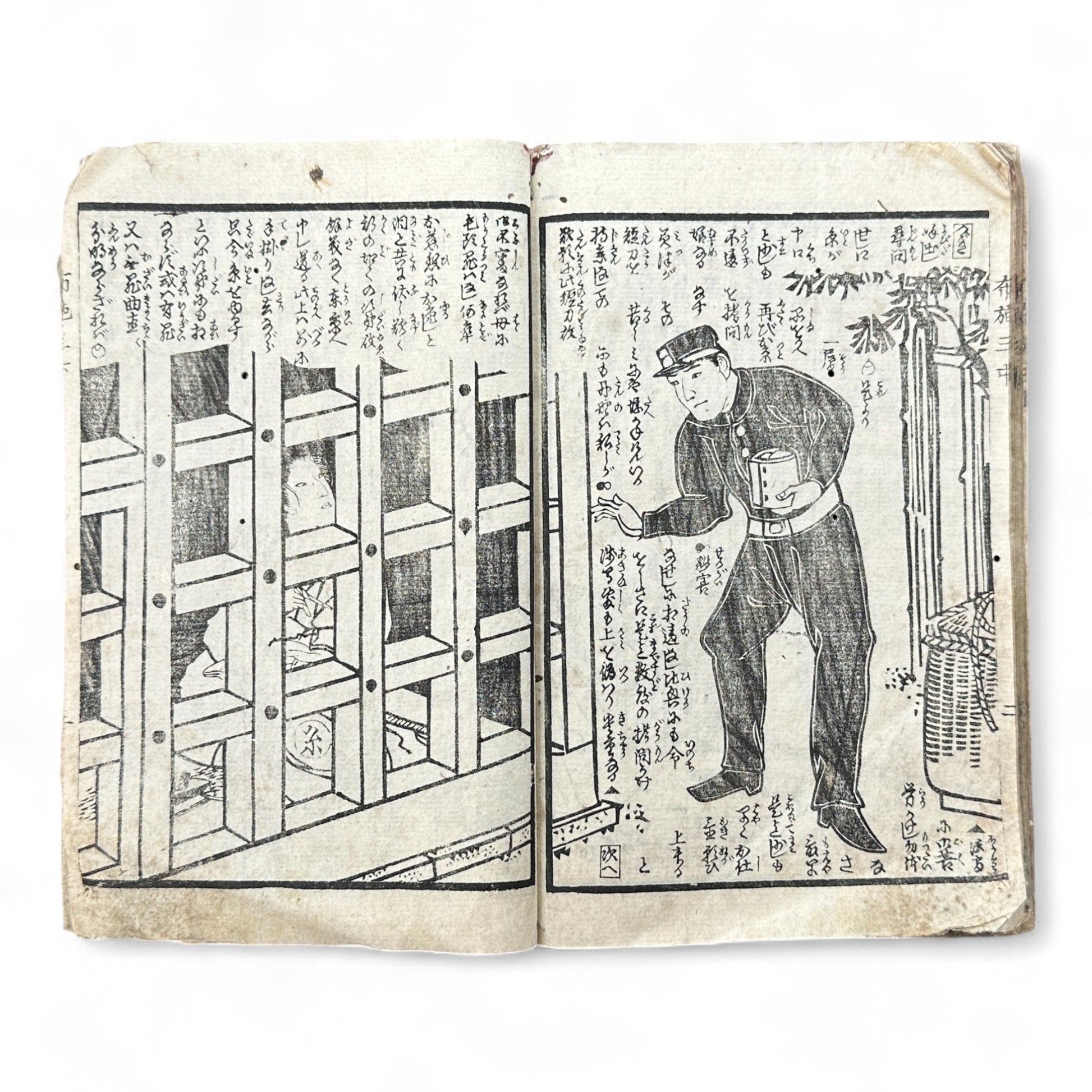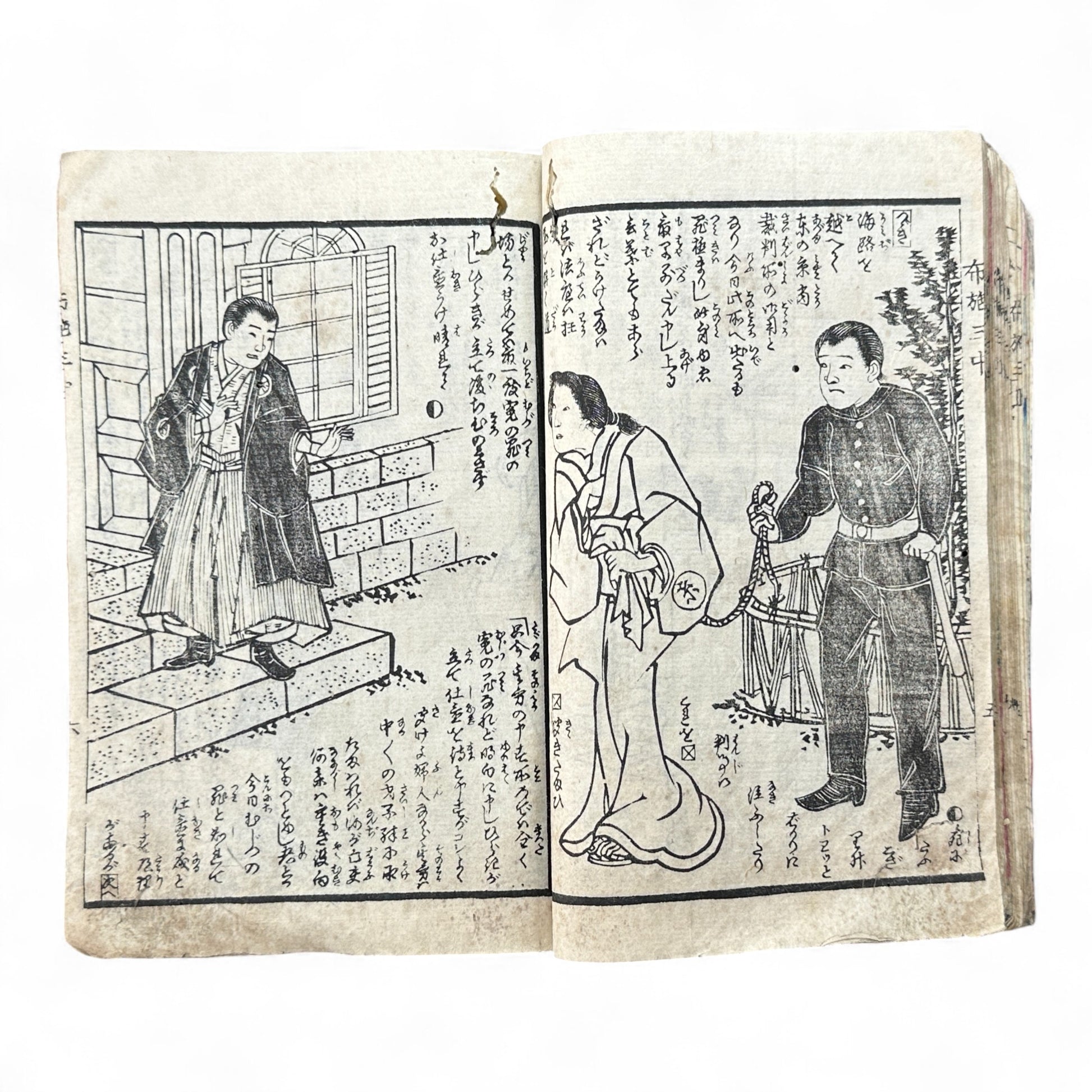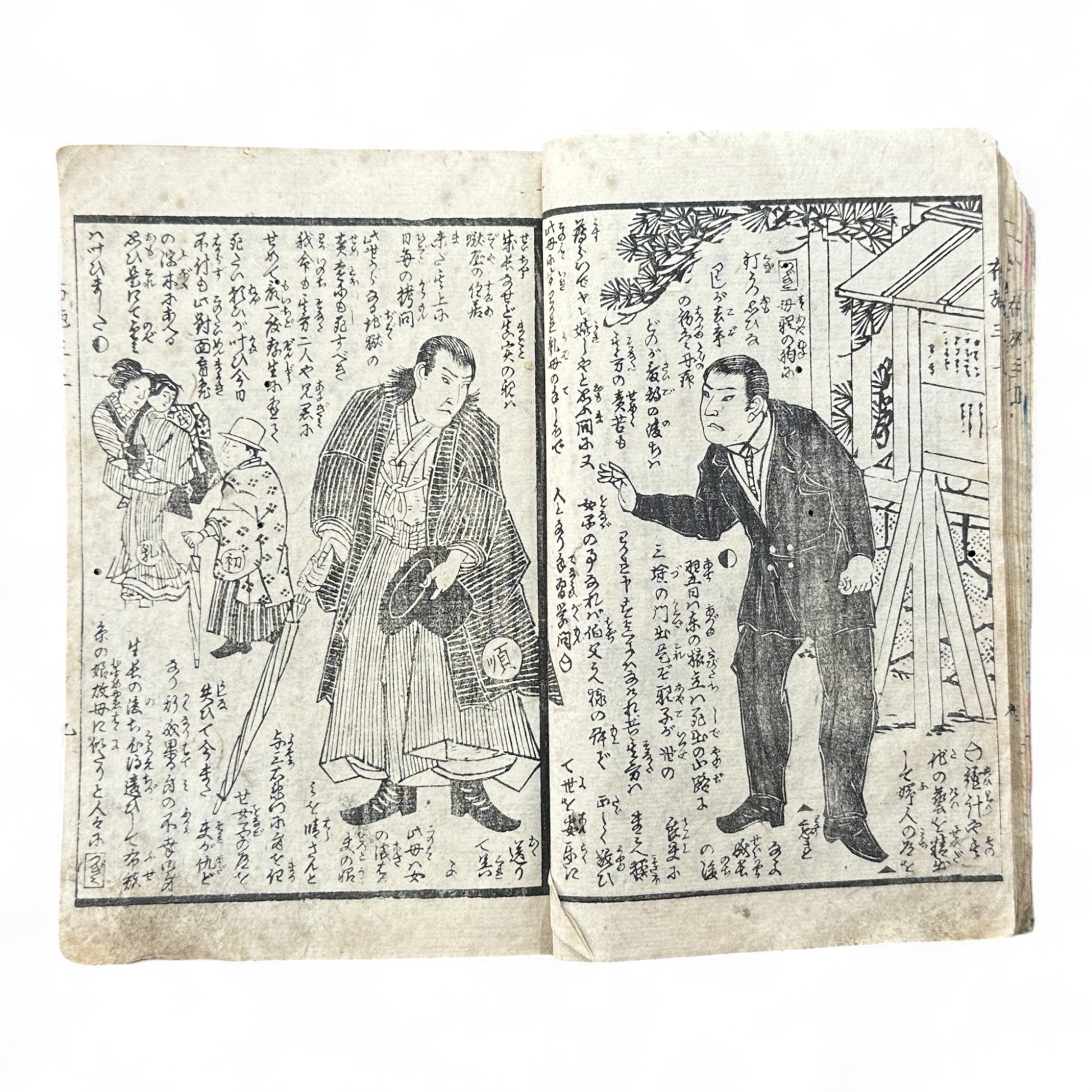 This remarkable Edo–Meiji transition illustrated book blends humor, morality, and daily life through expressive woodblock-printed illustrations and vivid storytelling. Written by Shōrin Haku’en, a well-known gesaku author of the late Edo period, Fuse Monogatari (“Tales of Generosity”) reflects the playful, didactic spirit of popular Japanese literature on the eve of modernization.