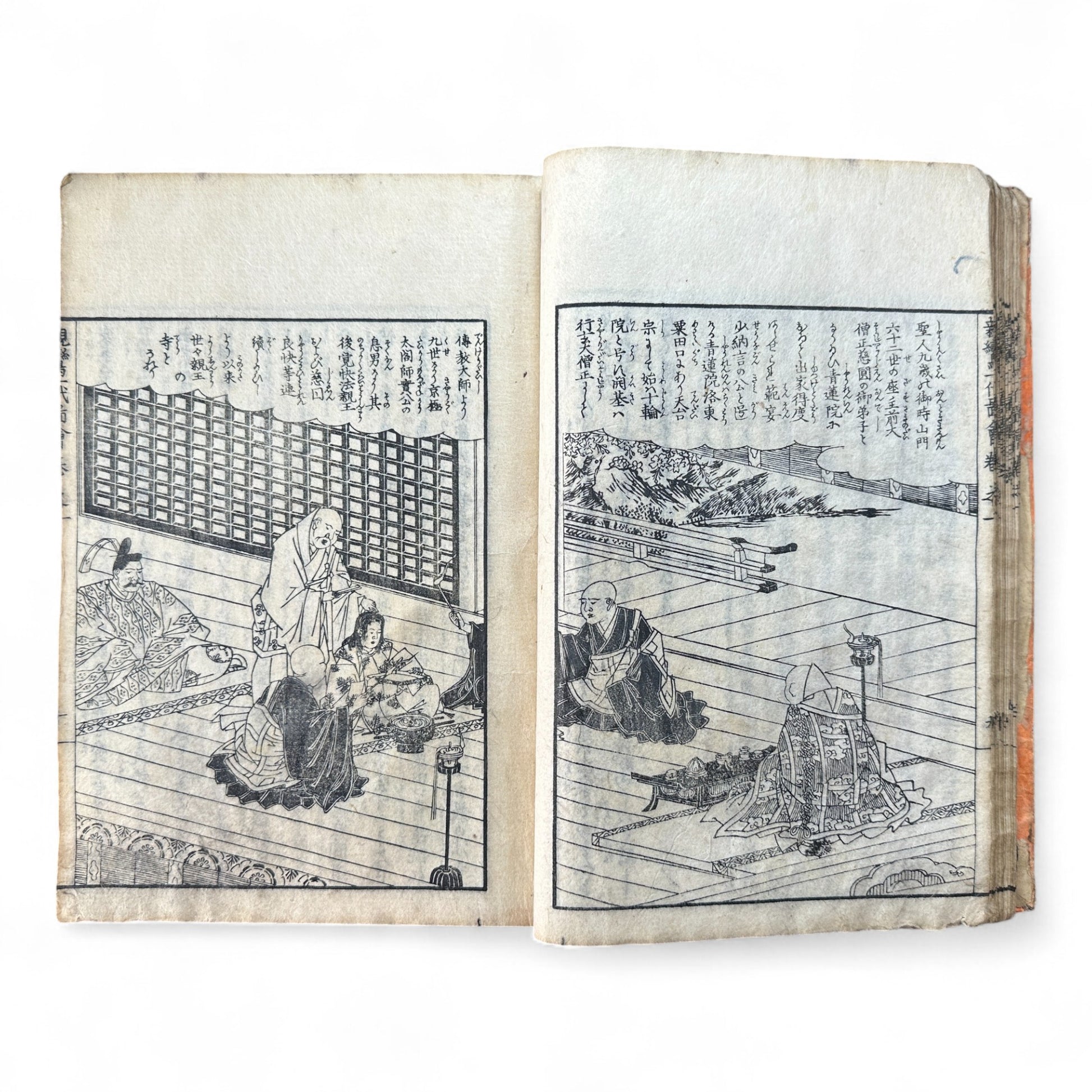 Godaiki Zue (御代記図繪) is a rare and historically significant Japanese woodblock-printed book illustrating the imperial genealogy and sacred Buddhist history of Japan.