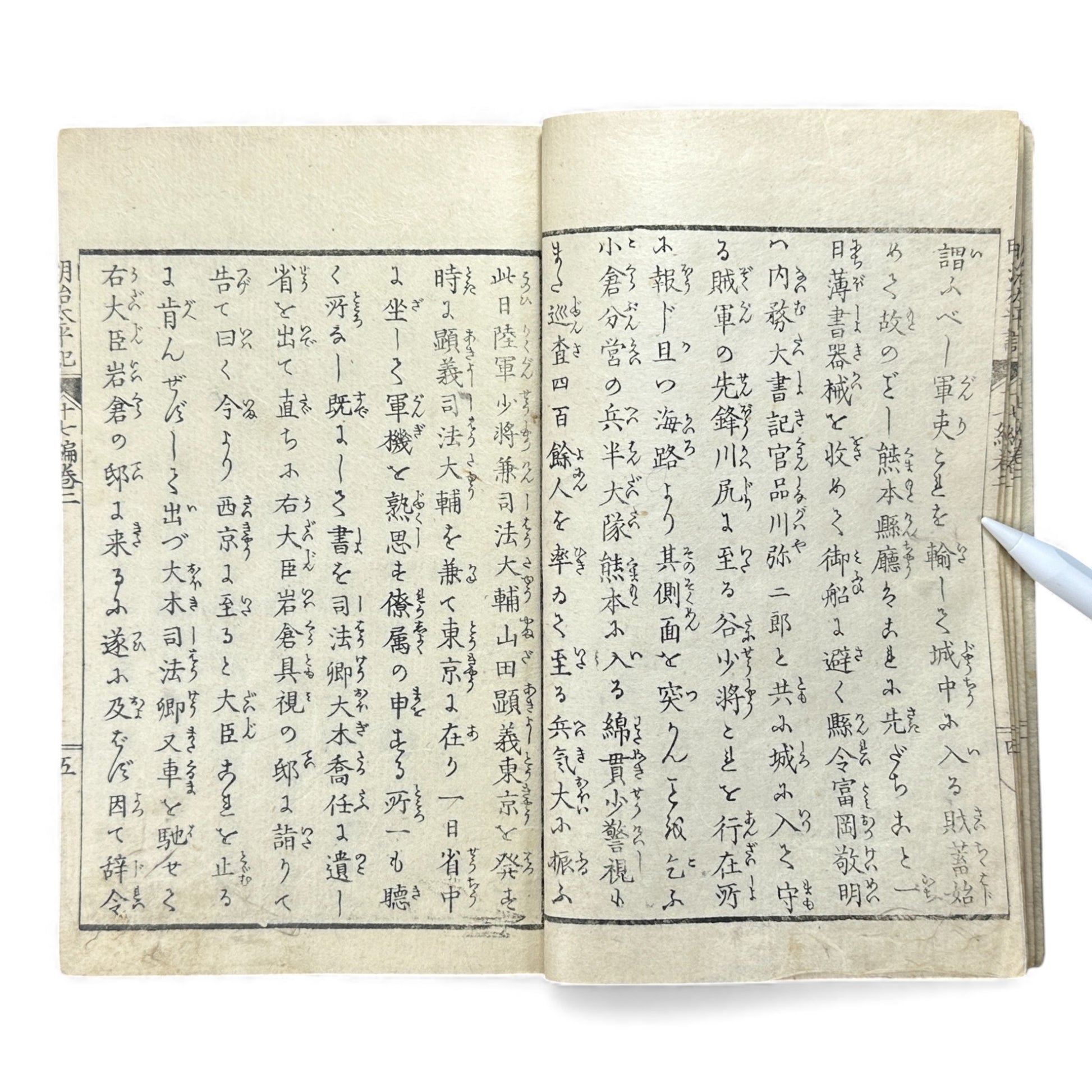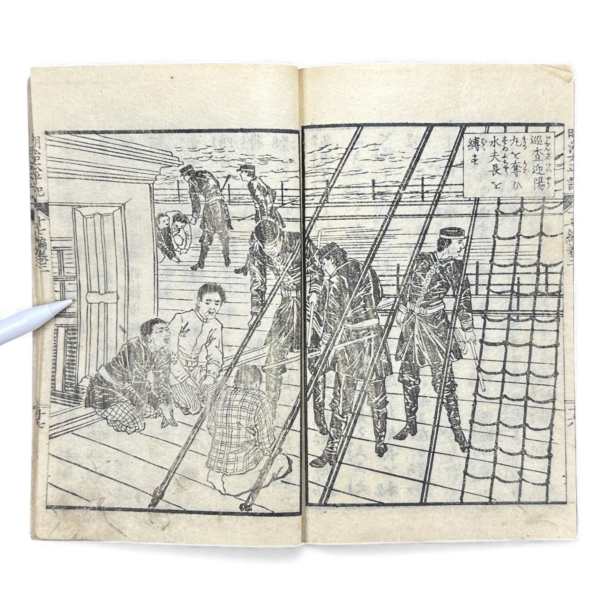 Produced during Japan’s rapid modernization, this book represents both a literary and artistic witness to the Meiji Restoration — combining the aesthetic of Edo-period storytelling with the historical immediacy of contemporary reportage.
