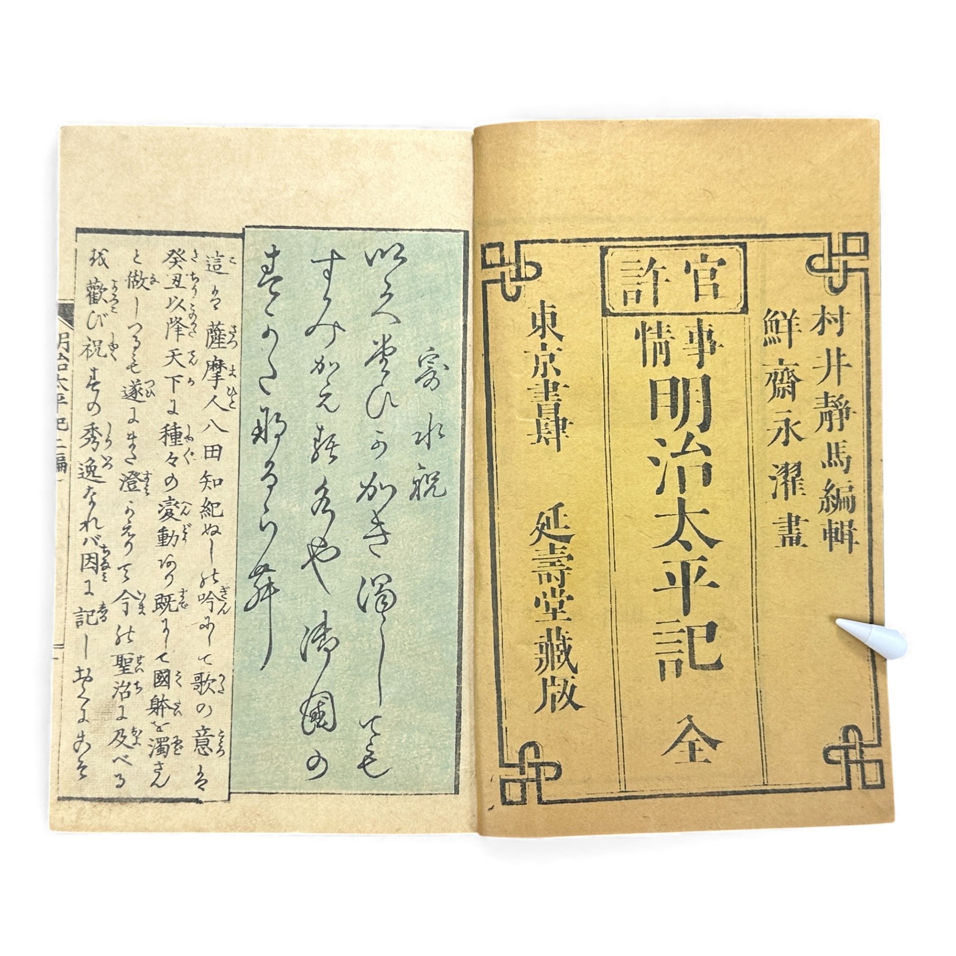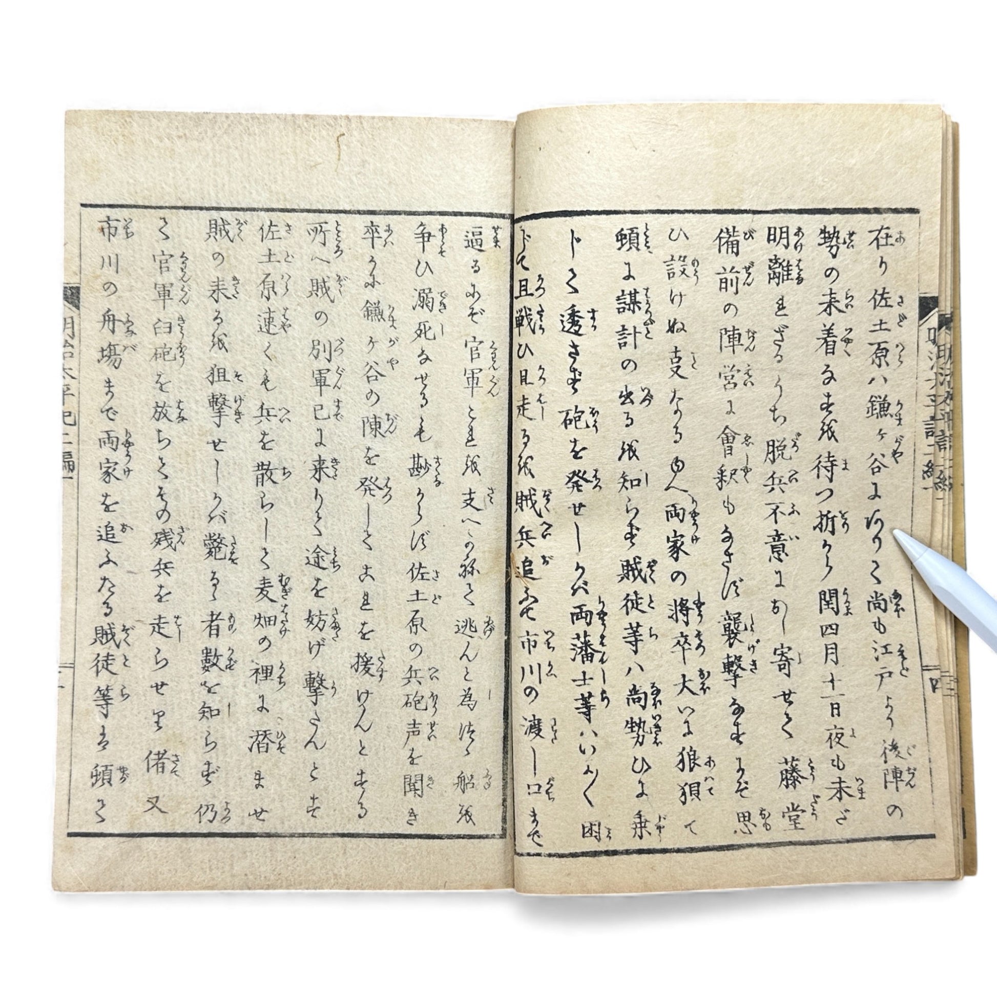 A remarkable piece for collectors of samurai history, Meiji Restoration literature, and antique Japanese woodblock-printed books.
