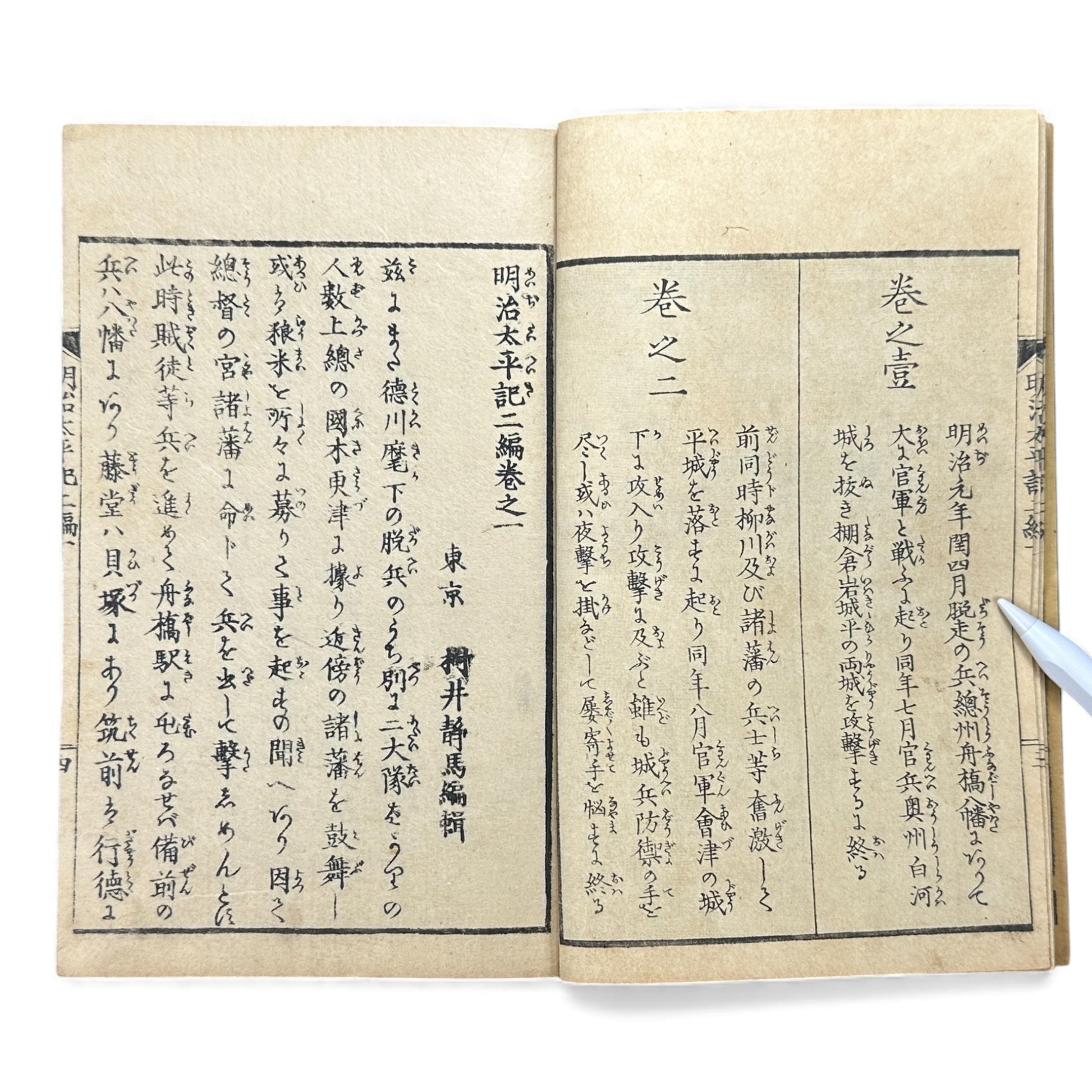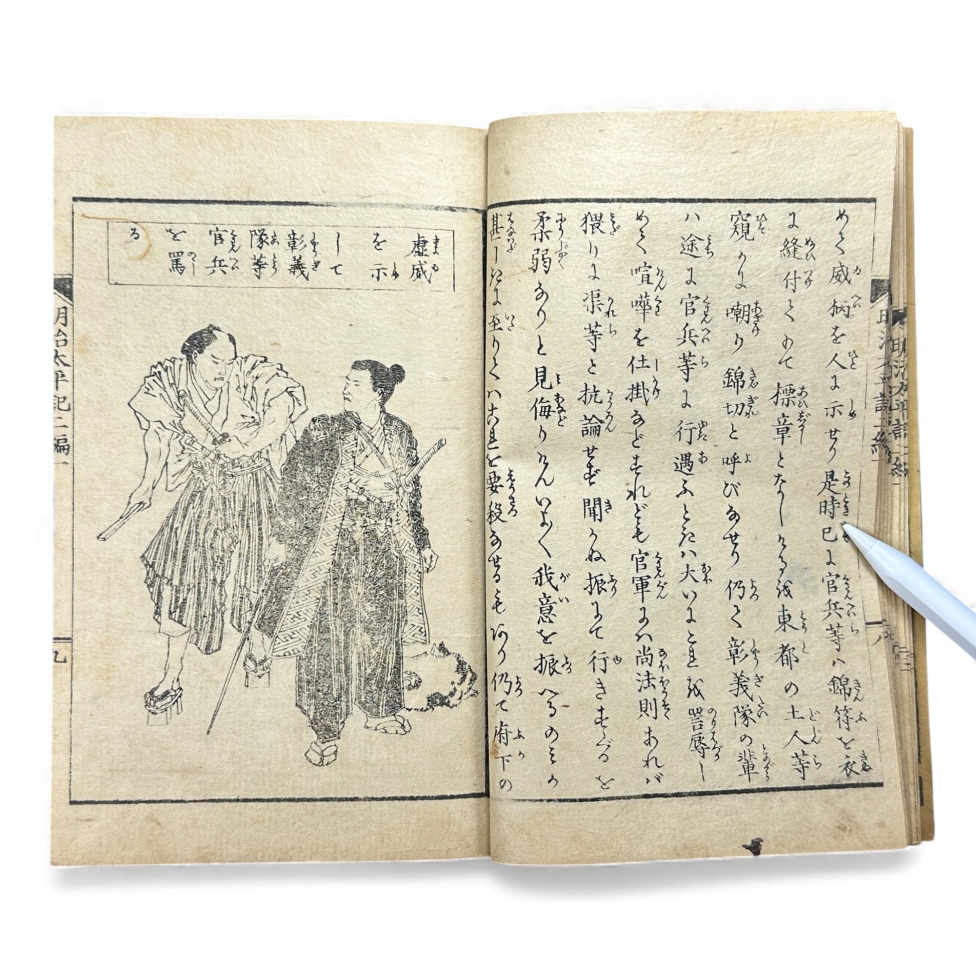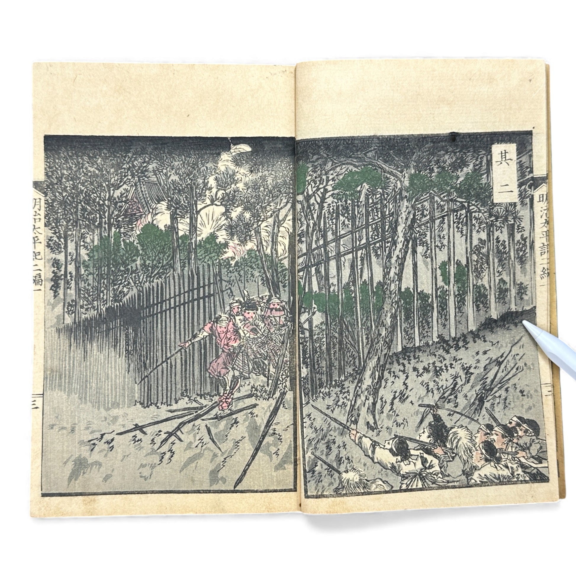 Meiji Taiheiki 明治太平記 Vol.2 Part 1 – Murai Gensai & Sensai Eitaku – 1875 Meiji Woodblock Book- B106