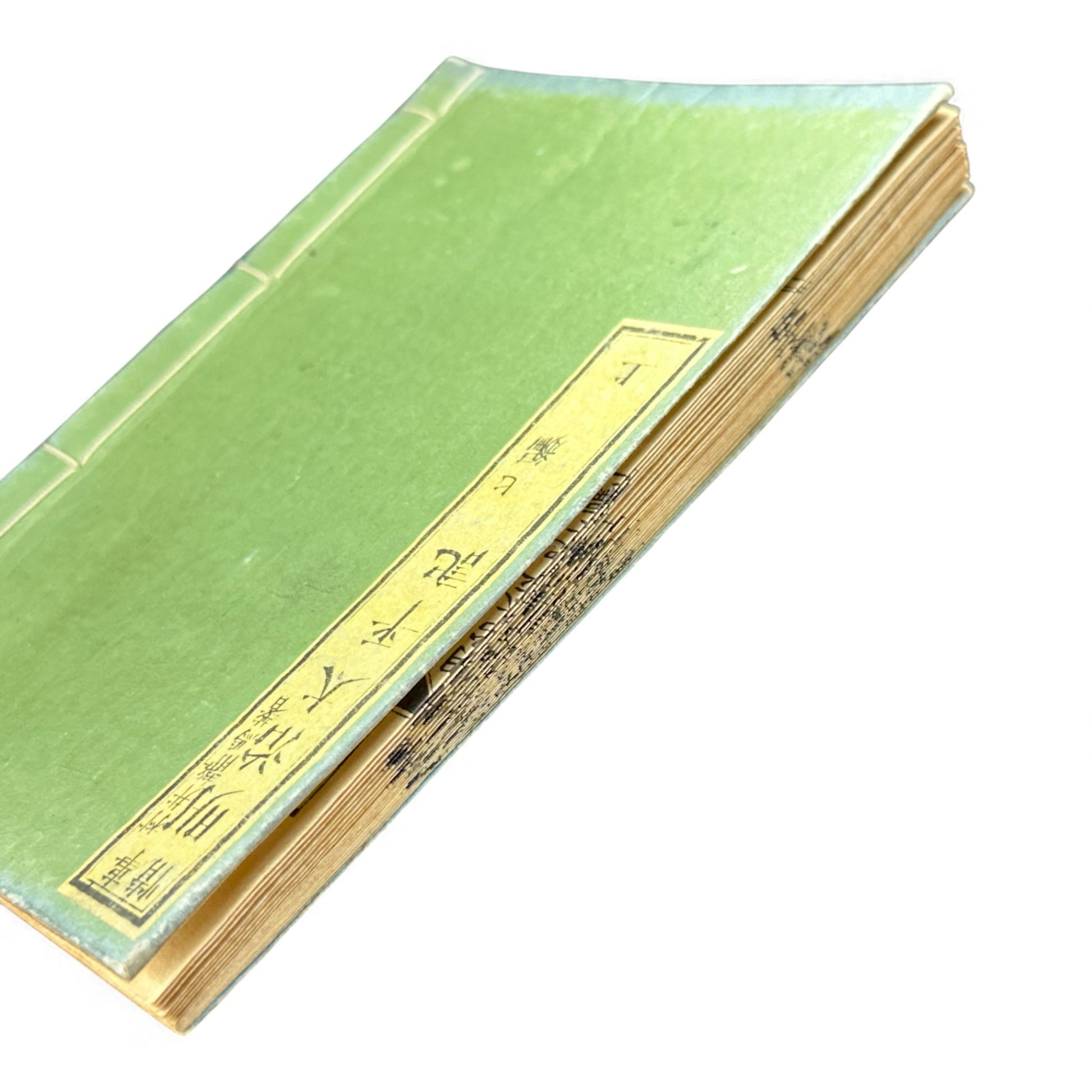 Text is printed in dense vertical columns on handmade washi paper, with classic fukuro-toji (stab binding) and an embossed green cover. The printing style — crisp, uniform, and elegant — reflects the craftsmanship of early Meiji bookmaking, when publishers still used hand-carved blocks before the full adoption of movable type.